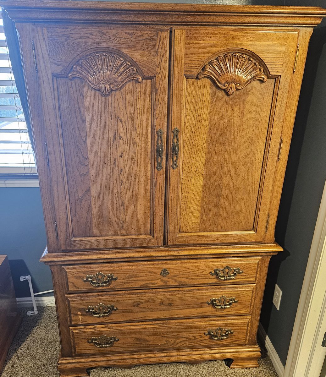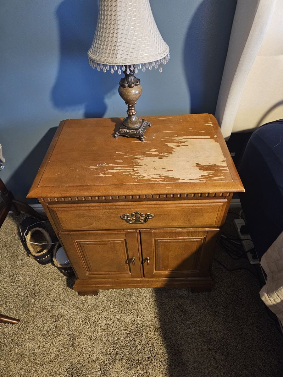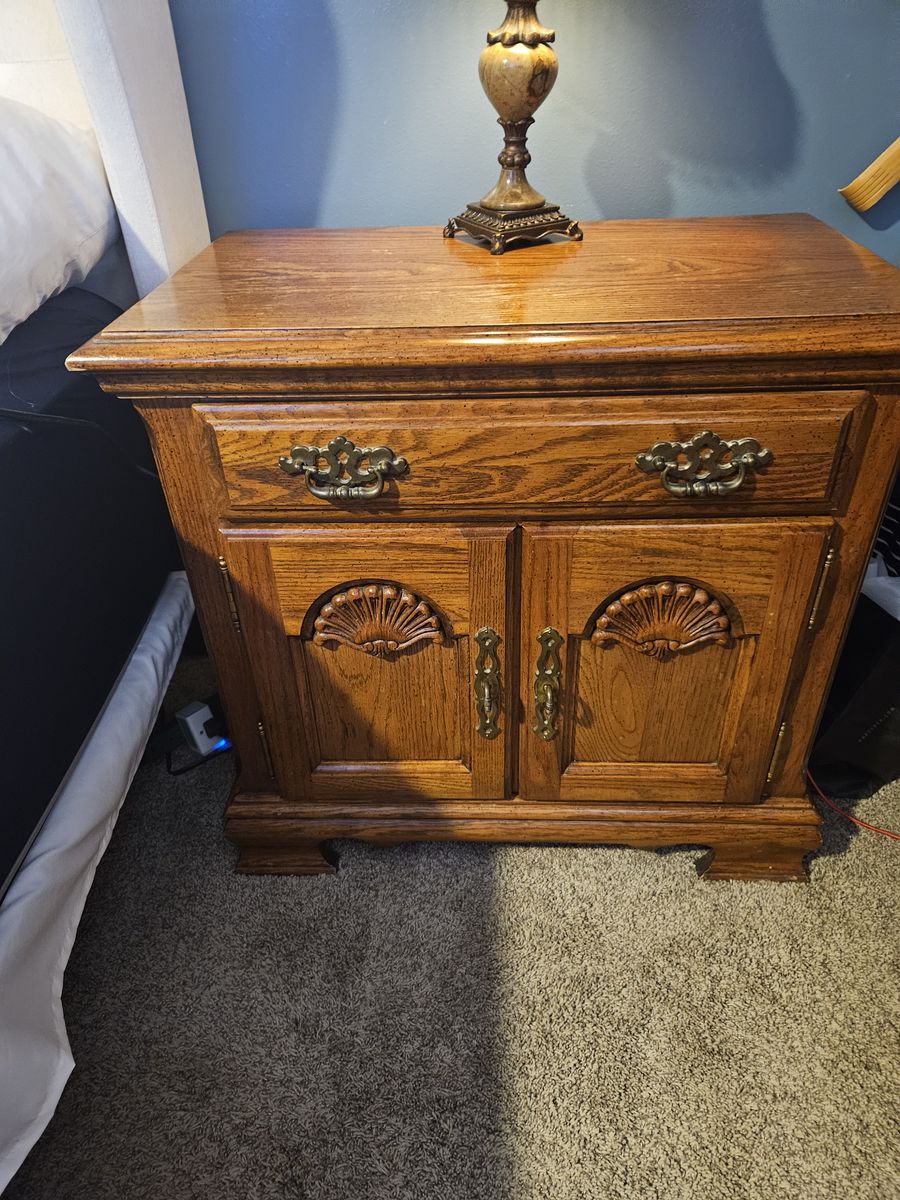 Broyhill Bedroom set- Includes Dresser with mirror, Armoire, 2 night stands-1 matches the set the other one is a close match. As you can see one night stand needs to be refinshed. Other than that the set is in good condition. I can send dimensions if you are seriously interested.