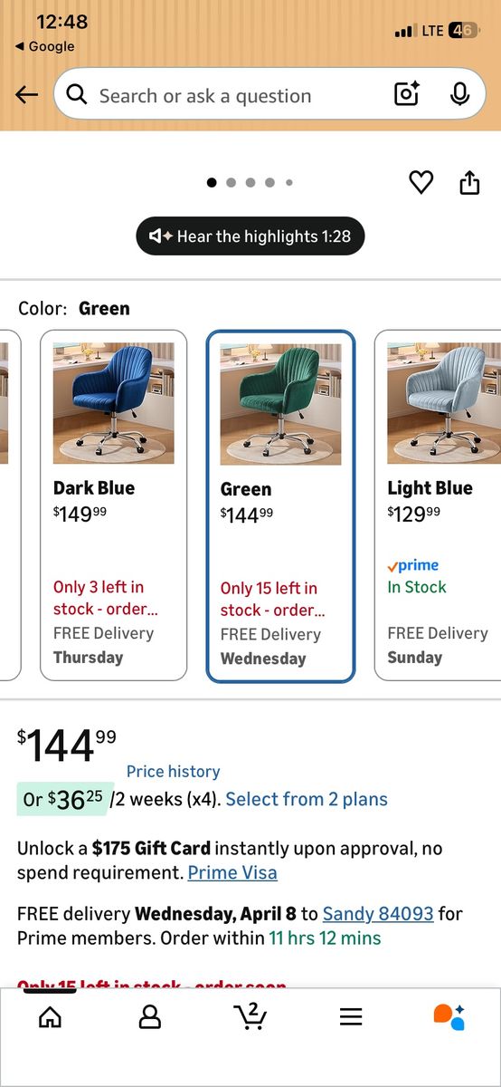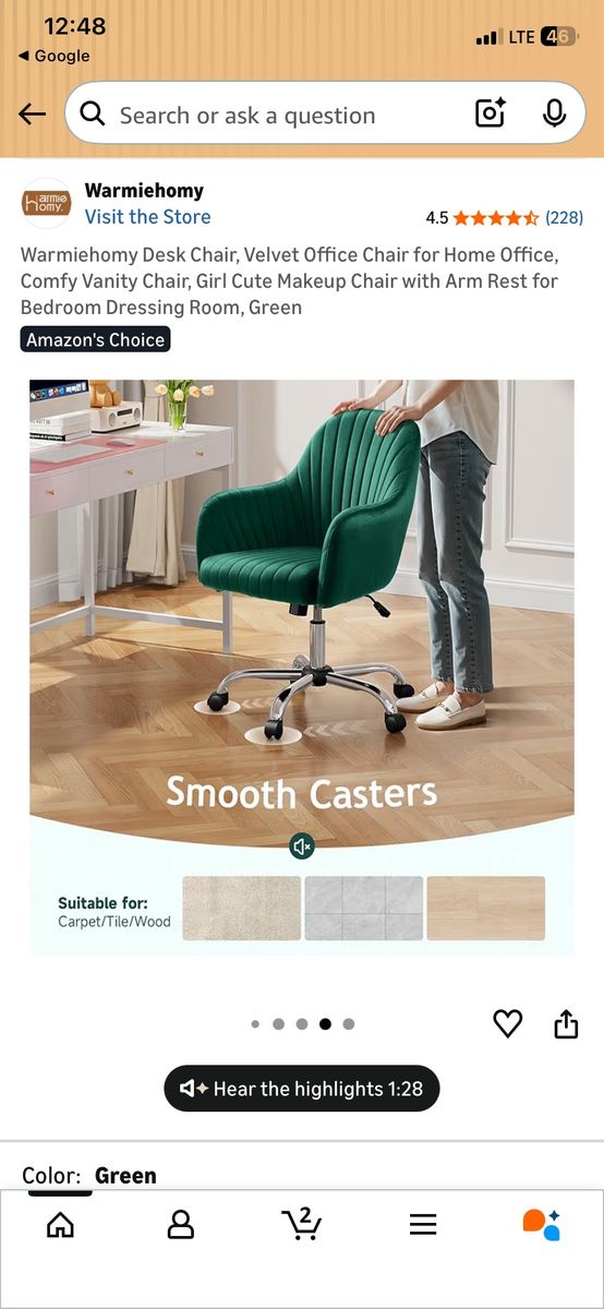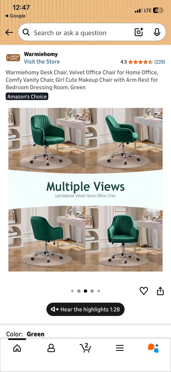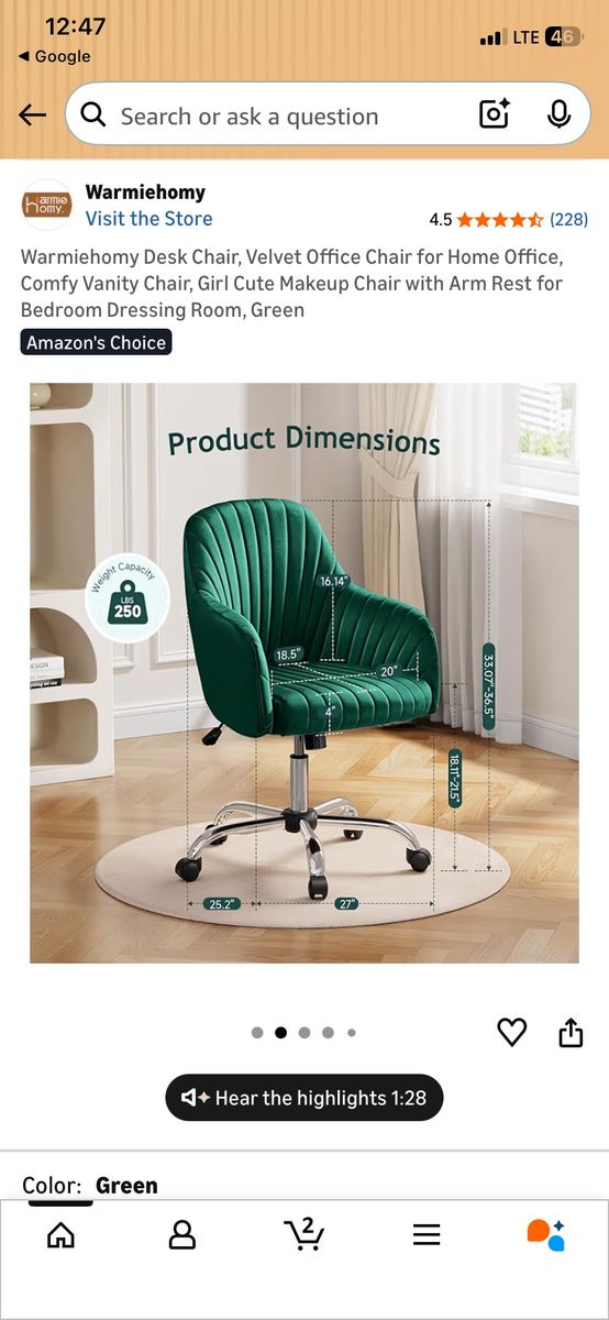 AMAZING EMERALD GREEN TECHNICALLY THIS IS A OFFICE CHAIR BUT IT WOULD GO GOOD ANYWHERE