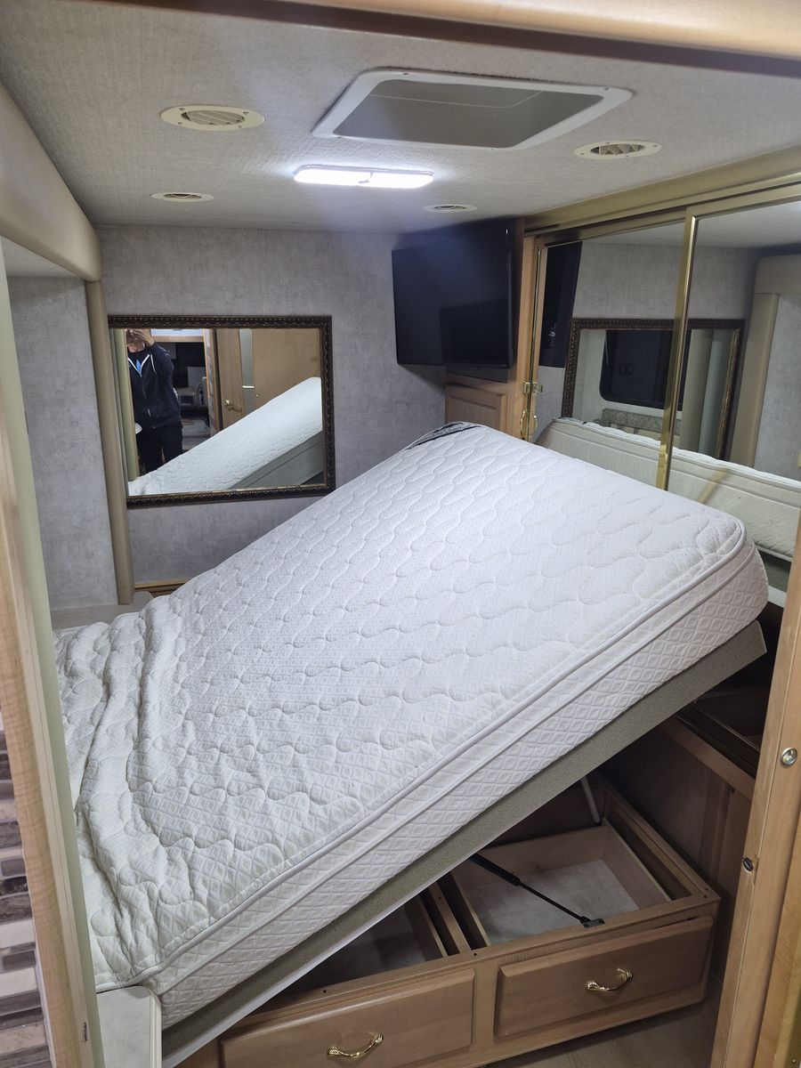 Zelle2005 National Sea Breeze M8360LX Motorhome. 46,800 miles. NO Check engine light. Recently interior remodeled. After market window tint add for heat reflection and privacy. New flooring. New electric Fireplace/ Heater. New 4 speed/reversible fans. New faux blinds. New faucets in kitchen, bathroom and shower. Freshly painted kitchen cabnets. New cabnet hardware. 5/2021, New front tires and front shocks. 6/2024, 4 New rear tires. 12/2024, New back brakes and rotors, rear shocks and New axle seals. 4/2025, 2 New Deep Cycle batteries. 4/2025, New tankless waterheater.