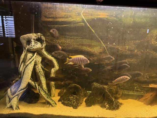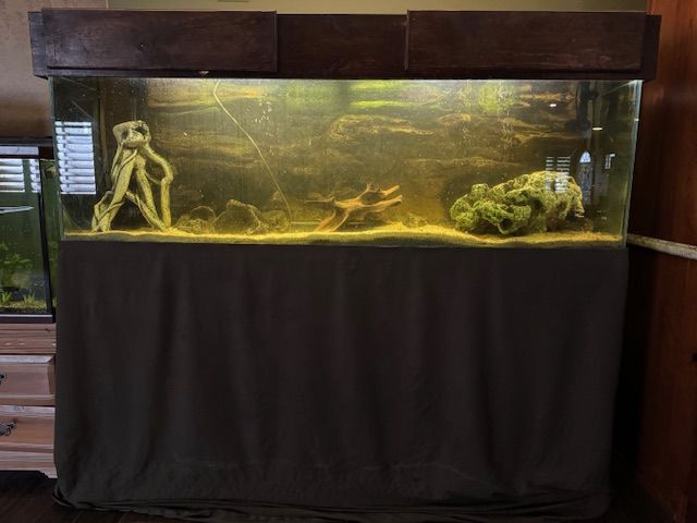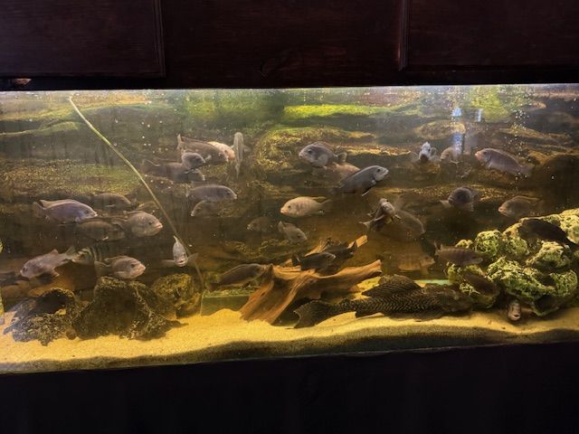 VenmoInitial price is $450. See the FREE details of this below in the ** section. We have had this fish tank for several years now. It is 120 gallons of fresh water. There are two big (shark looking) Plecos and several Cichlids of various colors. We have not bought a new fish for years. Every once in a while, new baby fish will appear. There are a couple of them right now. This tank comes with everything. There is a really nice 3D background that was $300 new. There are many multiple lava/volcanic rocks. Also some other pieces, as you can see in the pictures. 6' wide x 19 deep x 65 tall, including the base. It has a nice Fluval filter. The kids are gone and so it needs a new home. You will need to arrange the pick up and tranportation of the tank and fish. If you are new to this, please check ChatGPT or some other source on how to transport as safely as possible. ** Details of pricing vs FREE. We want these fish to go to a good home. Therefore, here is the deal: you pay $450 up front, either Venmo or Cash. I hold that amount for 8 months. After 8 months, if you can show that the fish are healthy and doing well, then I give you back the entire $450. We can do a Facetime call or something like that to see how they are doing. I am happy to answer your questions after the purchase as well. If you just want to pay and walk away without an 8 month checkup, that is up to you. Thank you for looking