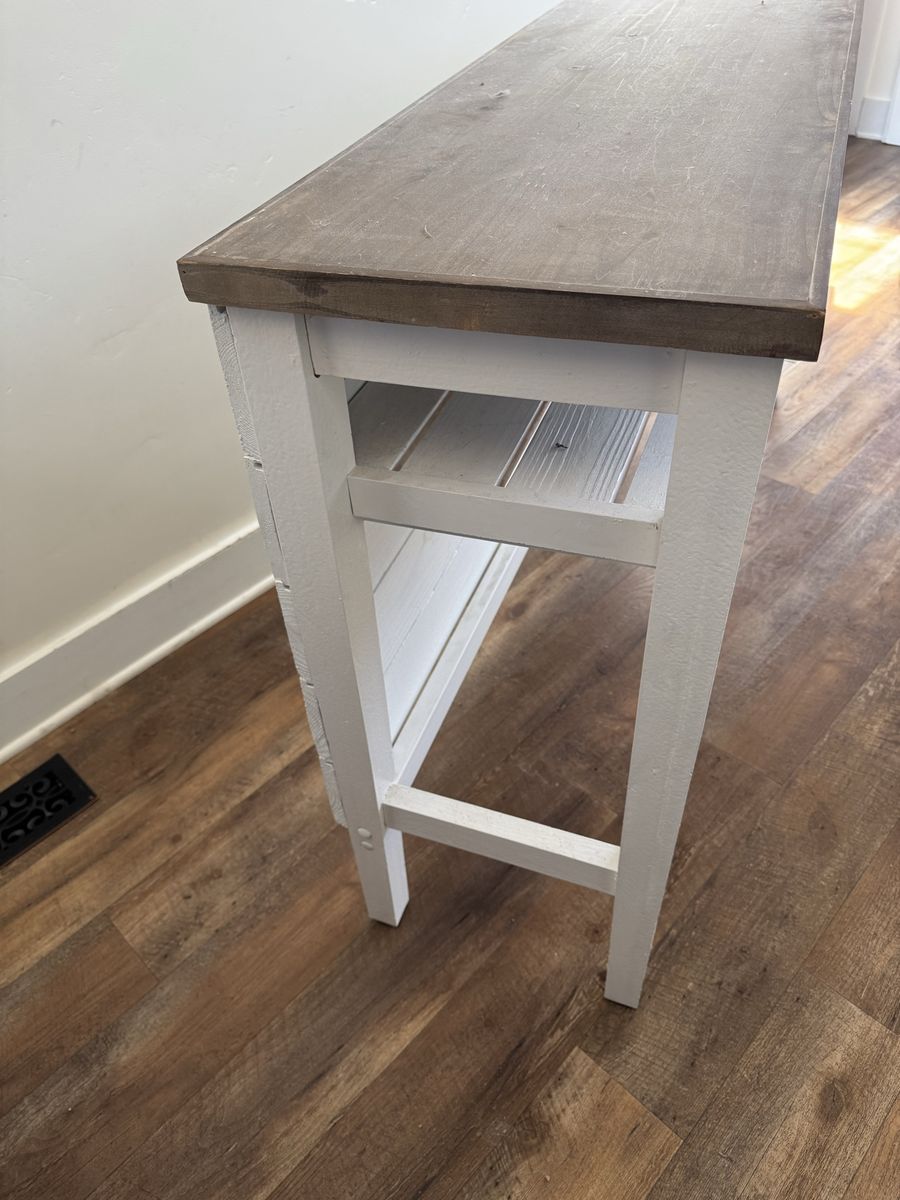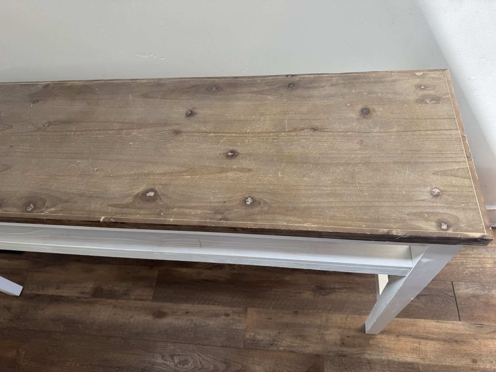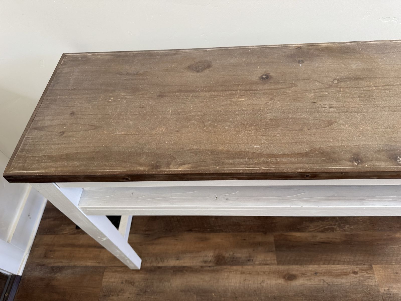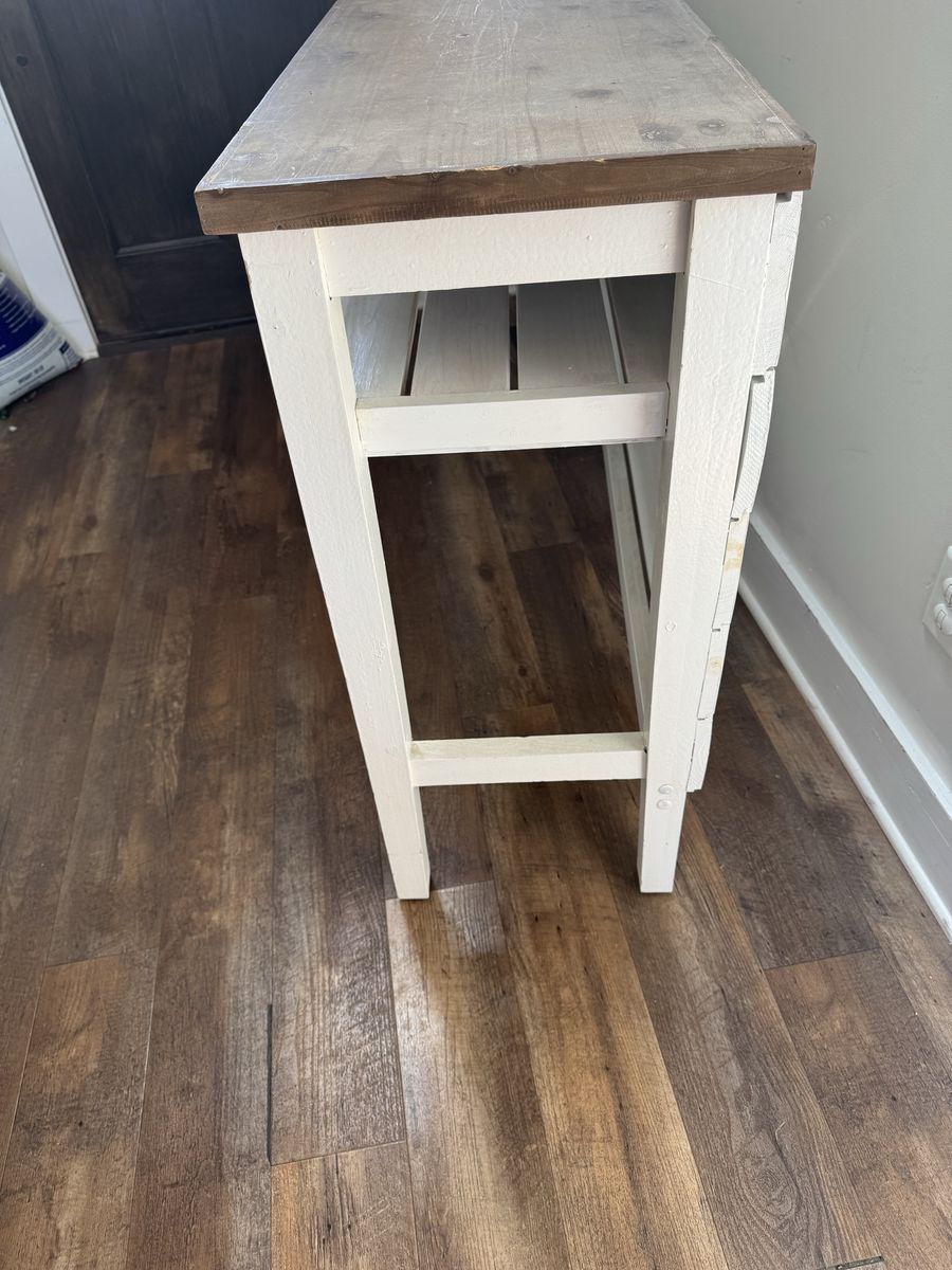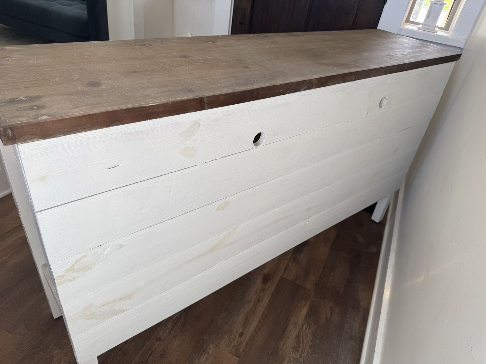 We added boards to the back of this table to hide TV cables.
