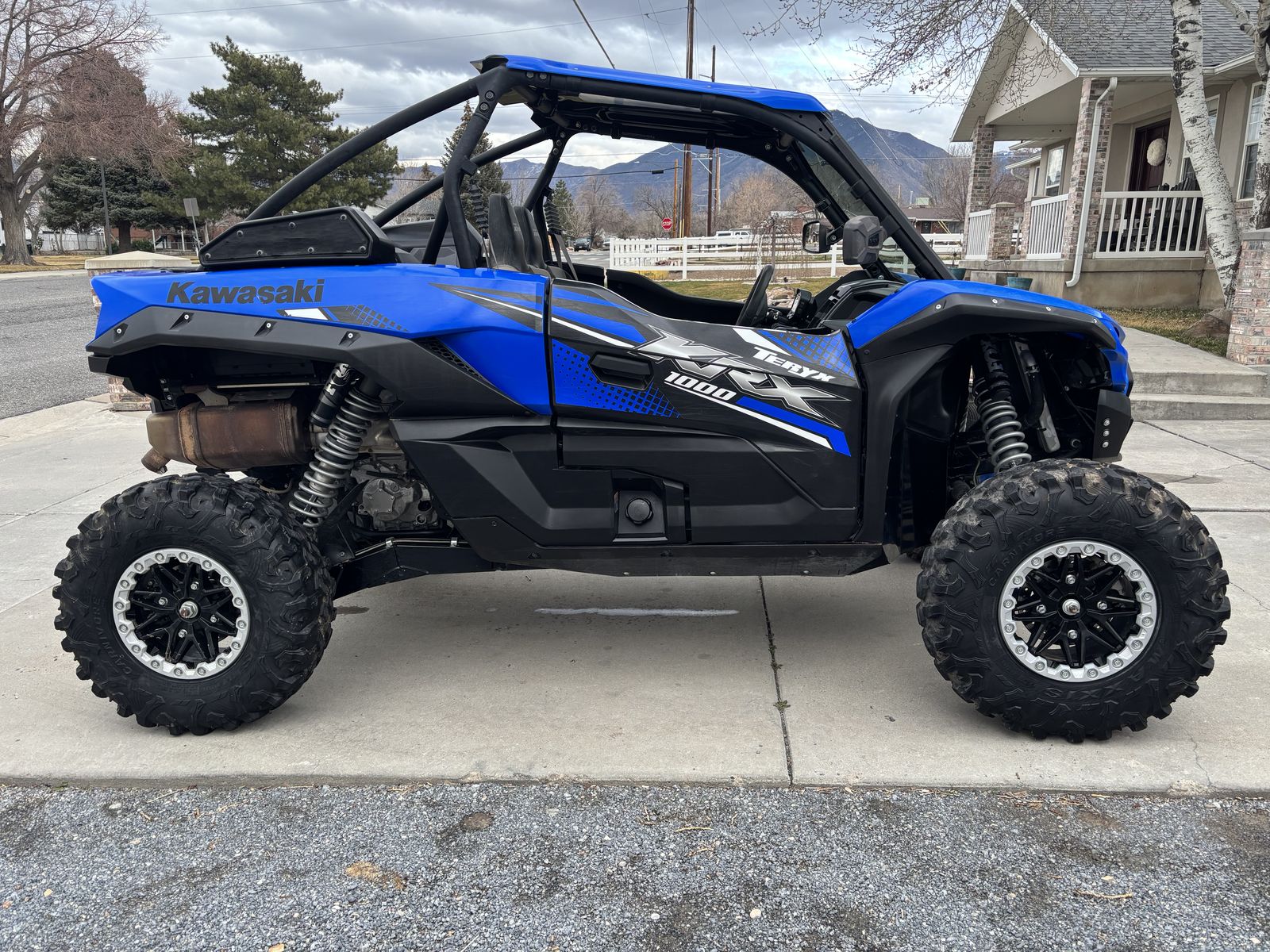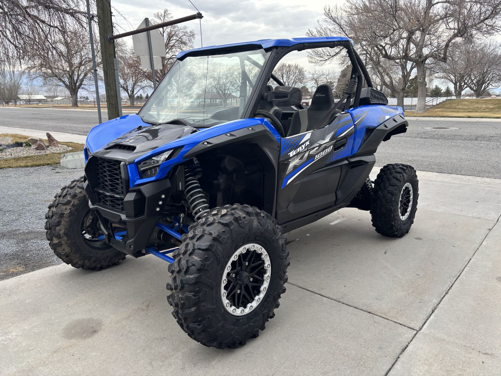 2001 Kawasaki KRX 1000- Machine has 125.8 hrs and 1426 miles. Has Street Legal kit, solid glass front winshield. Includes 3- additional 31 x 10.5 stock MAXXIS Carnivore tires.