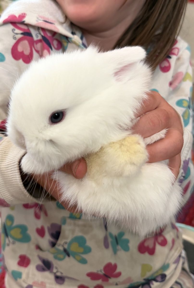 This sweet girl is so beautiful. She has bright blue eyes and the softest fur. She has been held daily and is very friendly. Would make the best pet. Ready to go home after May 30th.