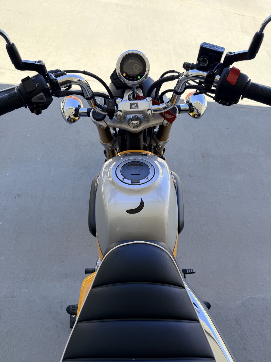 Additional Specs: 125cc Single-cylinder four-stroke, chain drive, 5 speed. Displacement: 124.9cc Front Suspension: 31mm inverted fork; 3.9 in. of travel Rear Suspension: Twin shock; 4.0 in. of travel Front Brakes: Single 220mm hydraulic disc; ABS Rear Brakes: Single 190mm hydraulic disc Front Tire: 120/80-12 Rear Tire: 130/80-12 Wheelbase: 45.0 in. Seat Height: 30.5 in. Fuel Capacity: 1.5 gal. Dry Weight: Curb Weight: 231 lb. Color: Banana Yellow