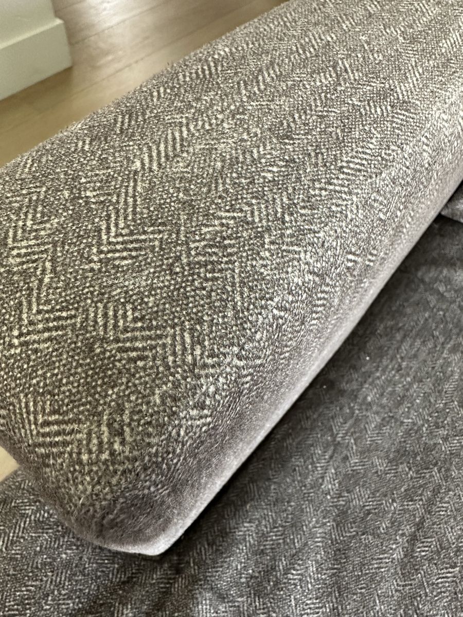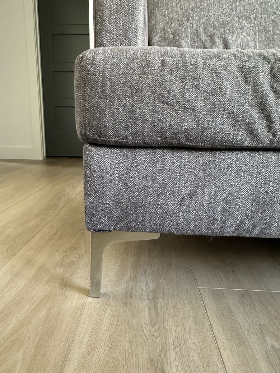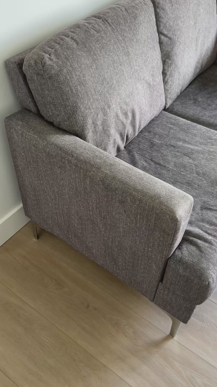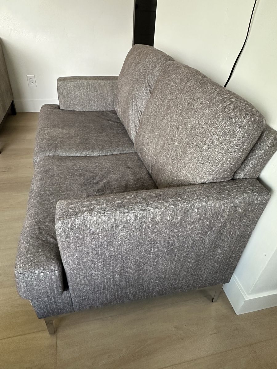 ZelleThis is an adorable and supportive loveseat with foam filled cushions and a soft microsuede fabric in a modern hash-line pattern - this is the perfect piece for a small space or as extra seating. It’s got a high cushion back that is comfortable to lean back on, and it’s a shallow enough depth to be able to rest your back right when you sit down without all that awkward scootching back - added bonus that means this chair is easy to get out of - very accessible. Bought this brand new 5 years ago and it is still very sturdy, clean, and comfortable - no sinking spots to speak of. No pet household. Non-smoking household. Where you sit measurements: Seat depth with cushions 20.5 inches, Seat depth without cushions 24 inches, back cushion height 20 inches high. Overall measurements: 54 inch width, 33.5 inch depth overall, 31 inch height overall