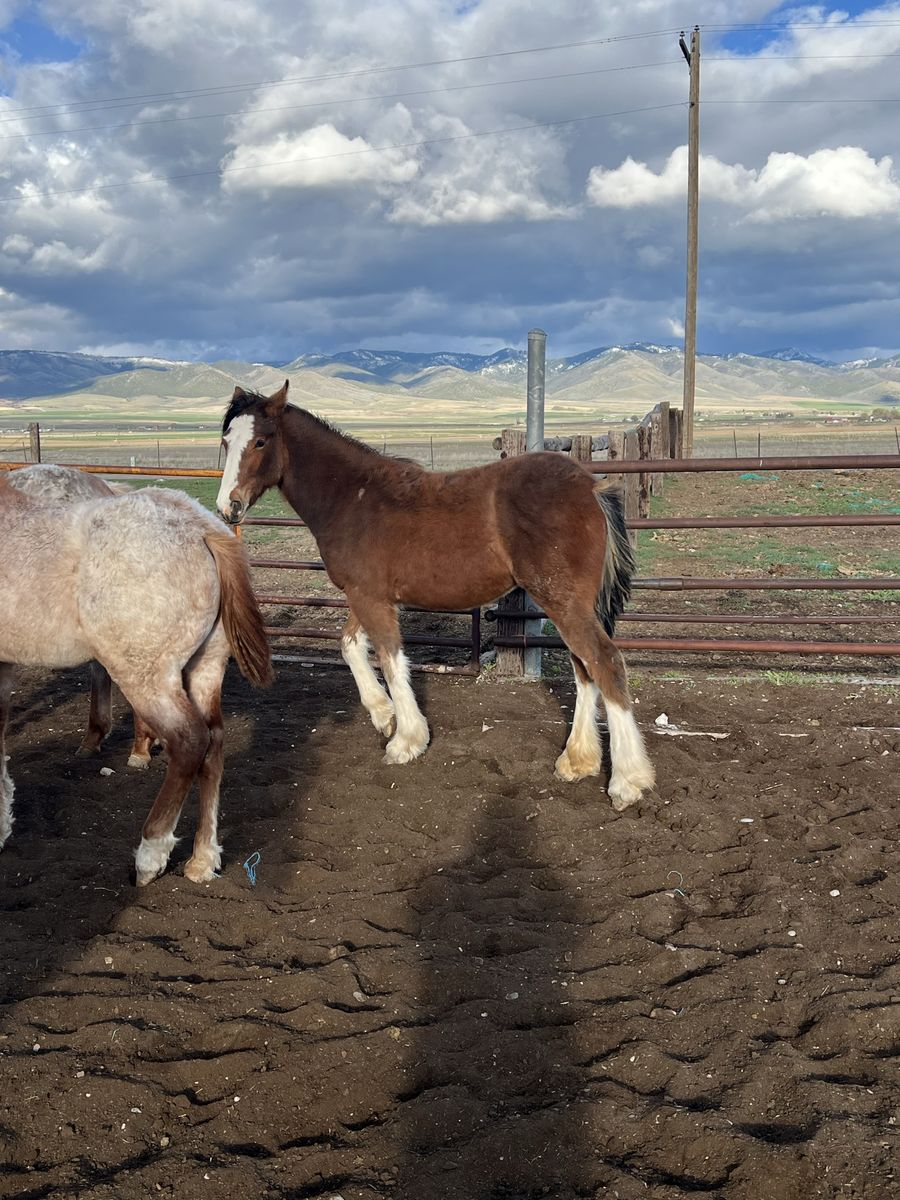 Yearling half drafts. Clyde/AQHA. Fillies and stud colts. $5000. Downey Idaho. Call for interest. We own both parents of all of them.