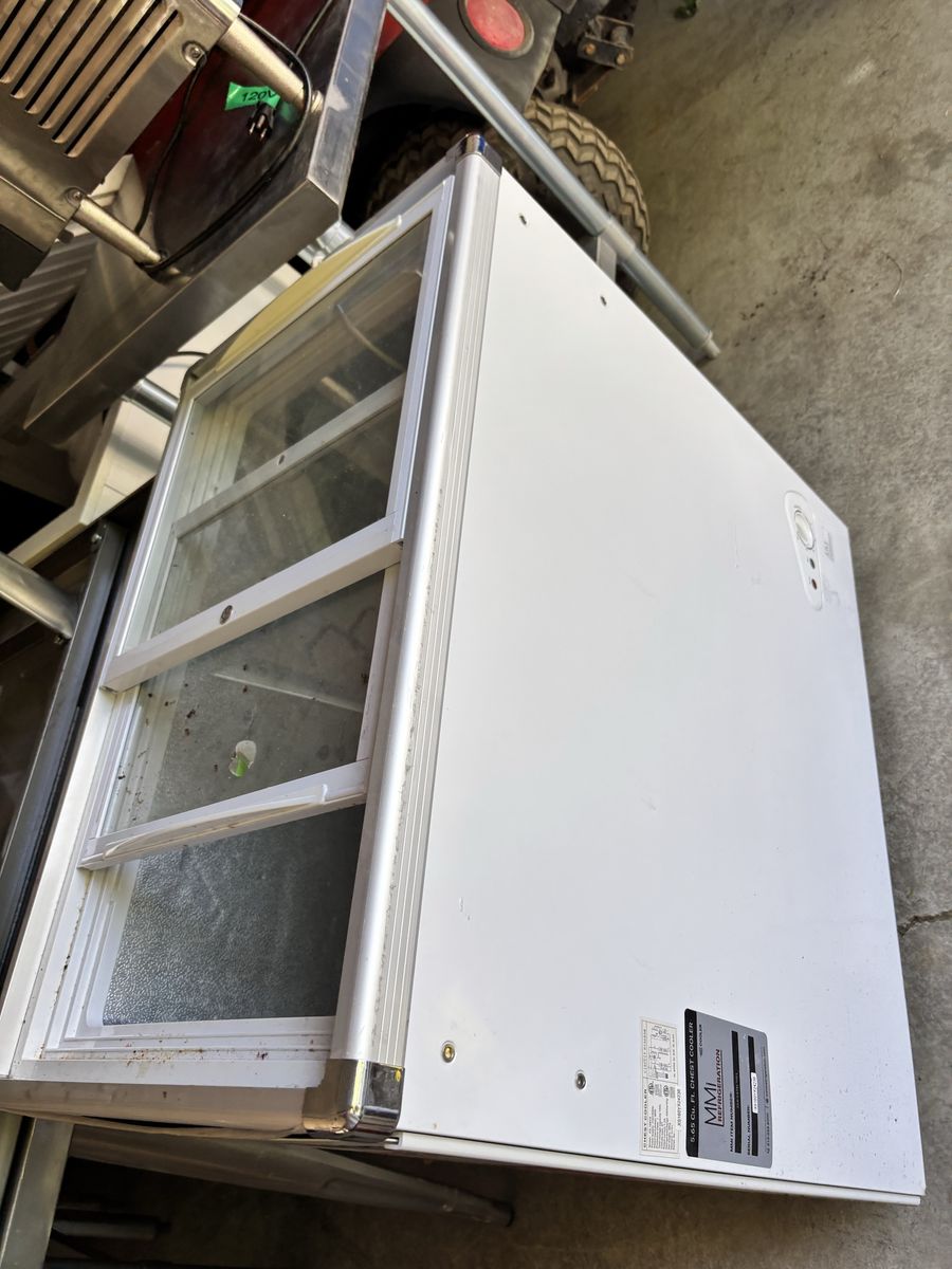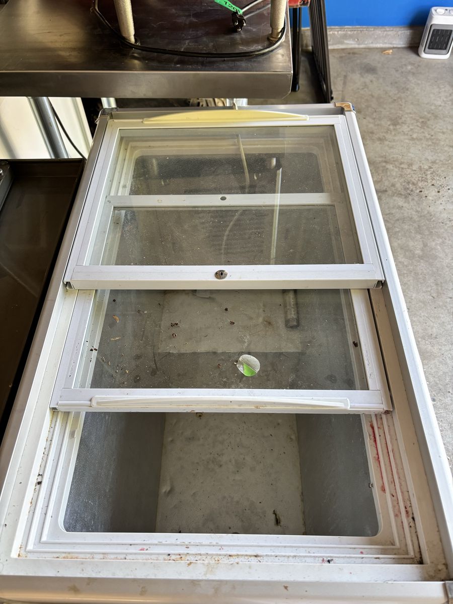 This is a very small freezer with two sliding doors on top