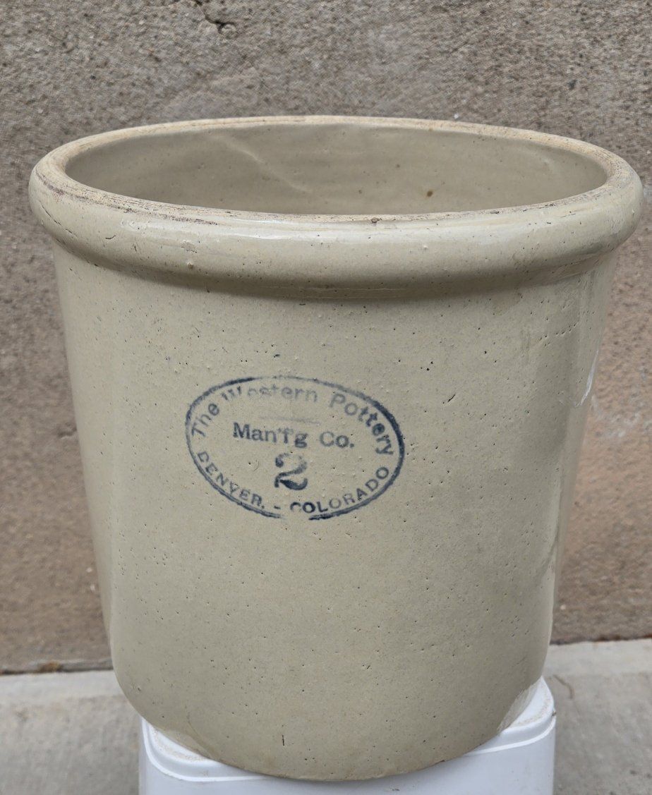 VenmoA rare 2gal 19th century Crock made by Western Pottery Company of Denver, CO. circa (1881-1890), known for their Salt glazed stoneware crocjs and jugs. Size 10" tall x 91/4" wide