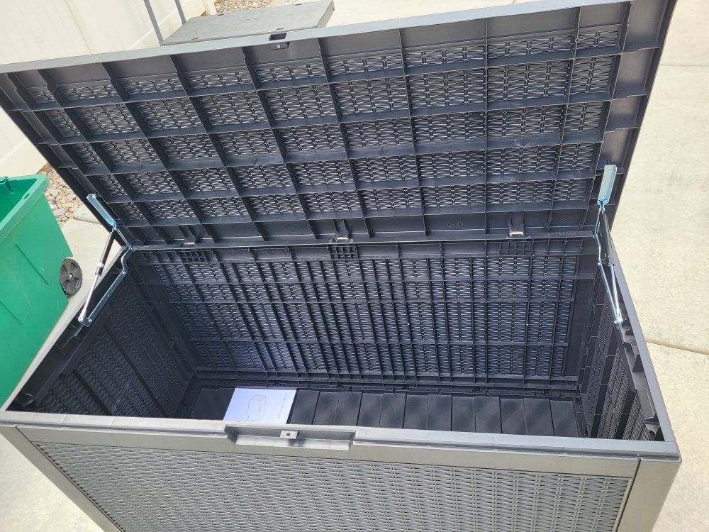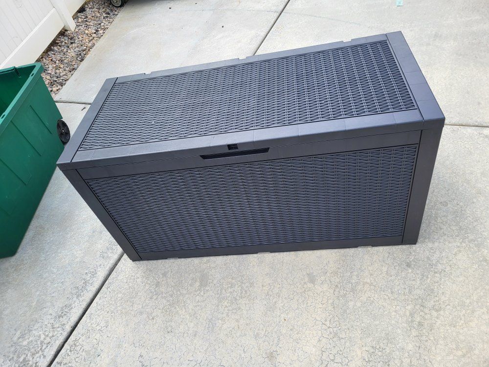 Qty-4 120gal Outdoor Keter Storage Deck Boxes w/Hydraulic Slow Close Lids Black UV Protected All Weather Resistant 49"L x 20"W x 24"H Brand New & Assembled ****