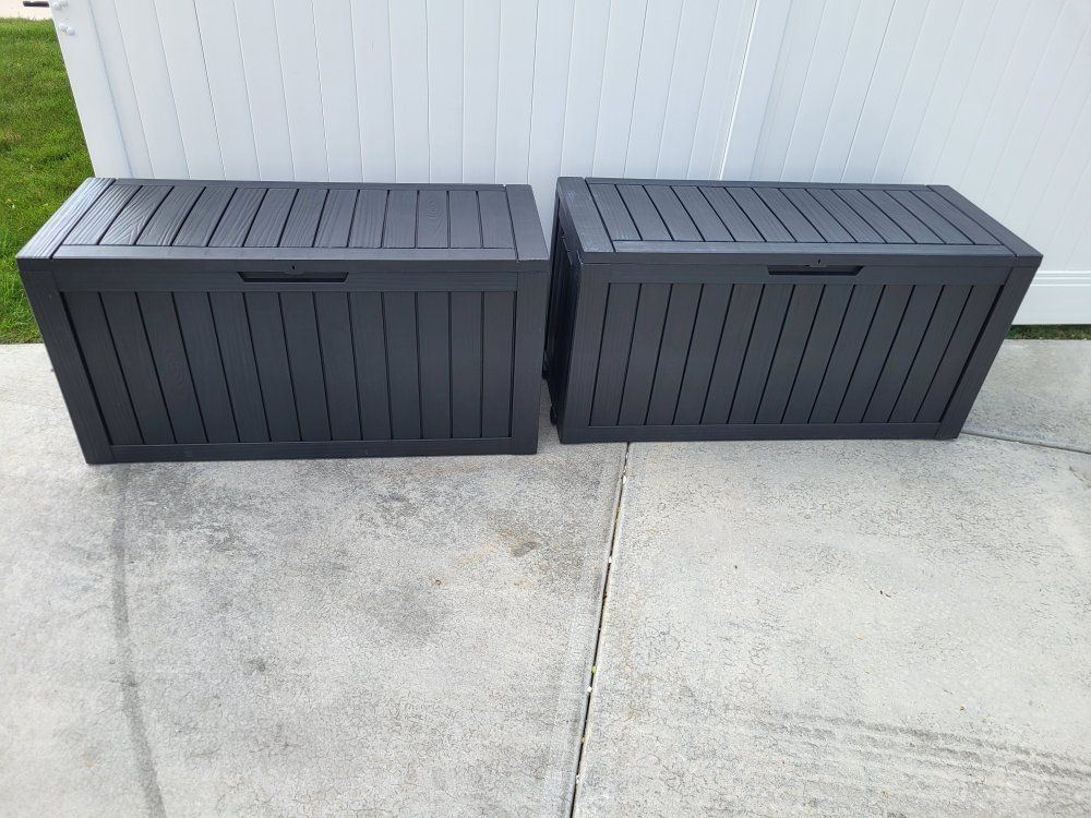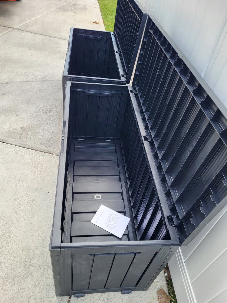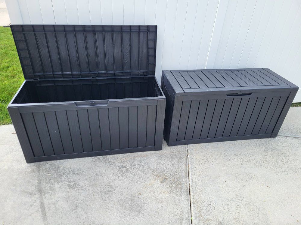 Qty-10 Outdoor Keter Storage Deck Boxes **w/Wheels *** 75gal All Weather Resistant UV Protected Polypropylene 46"L x 18"W x 24"H Brand New & Assembled ***