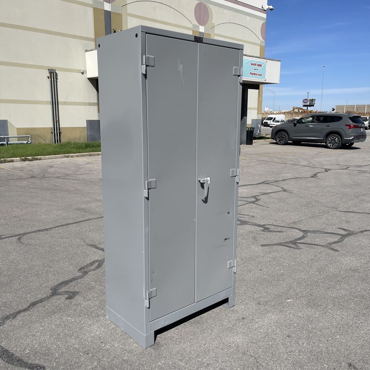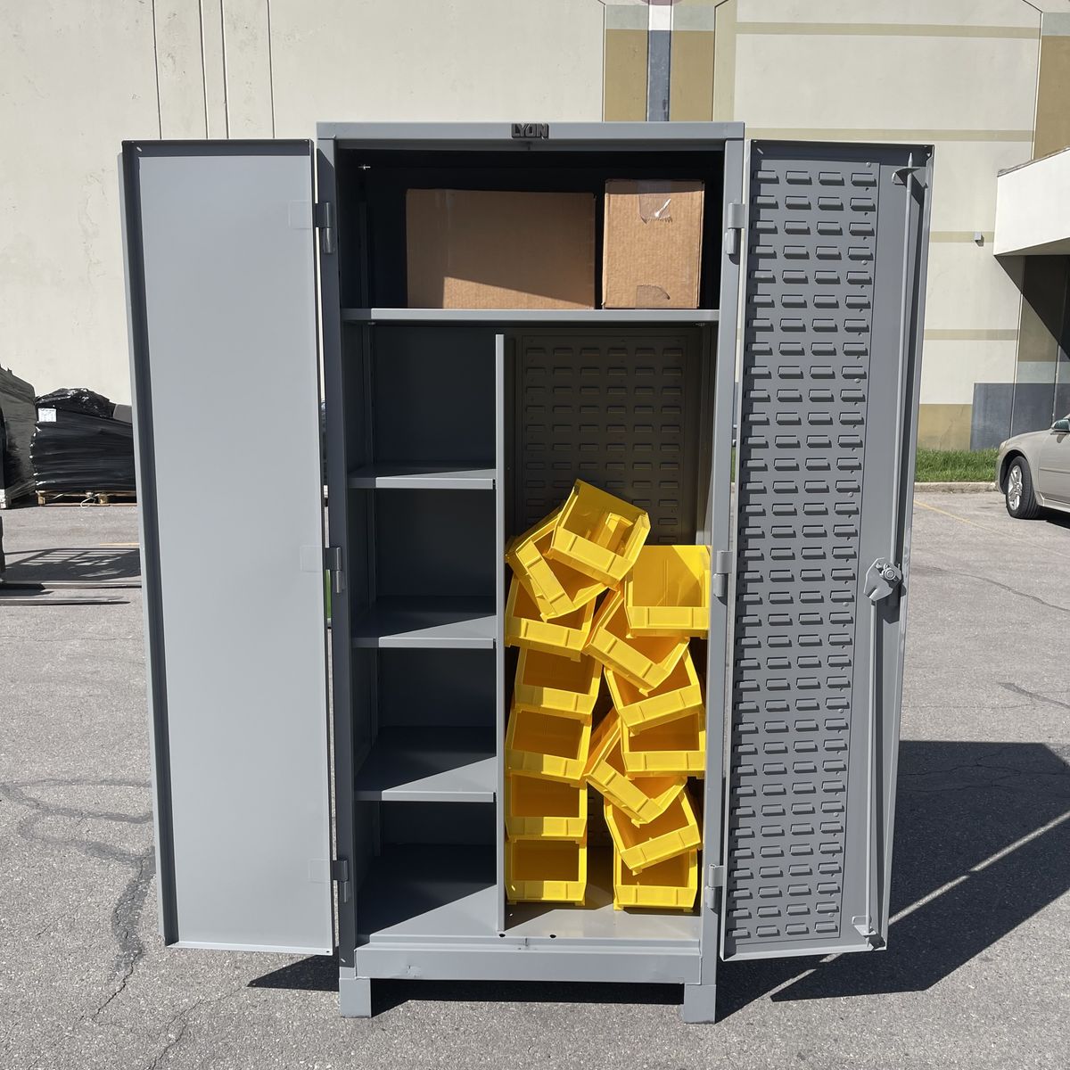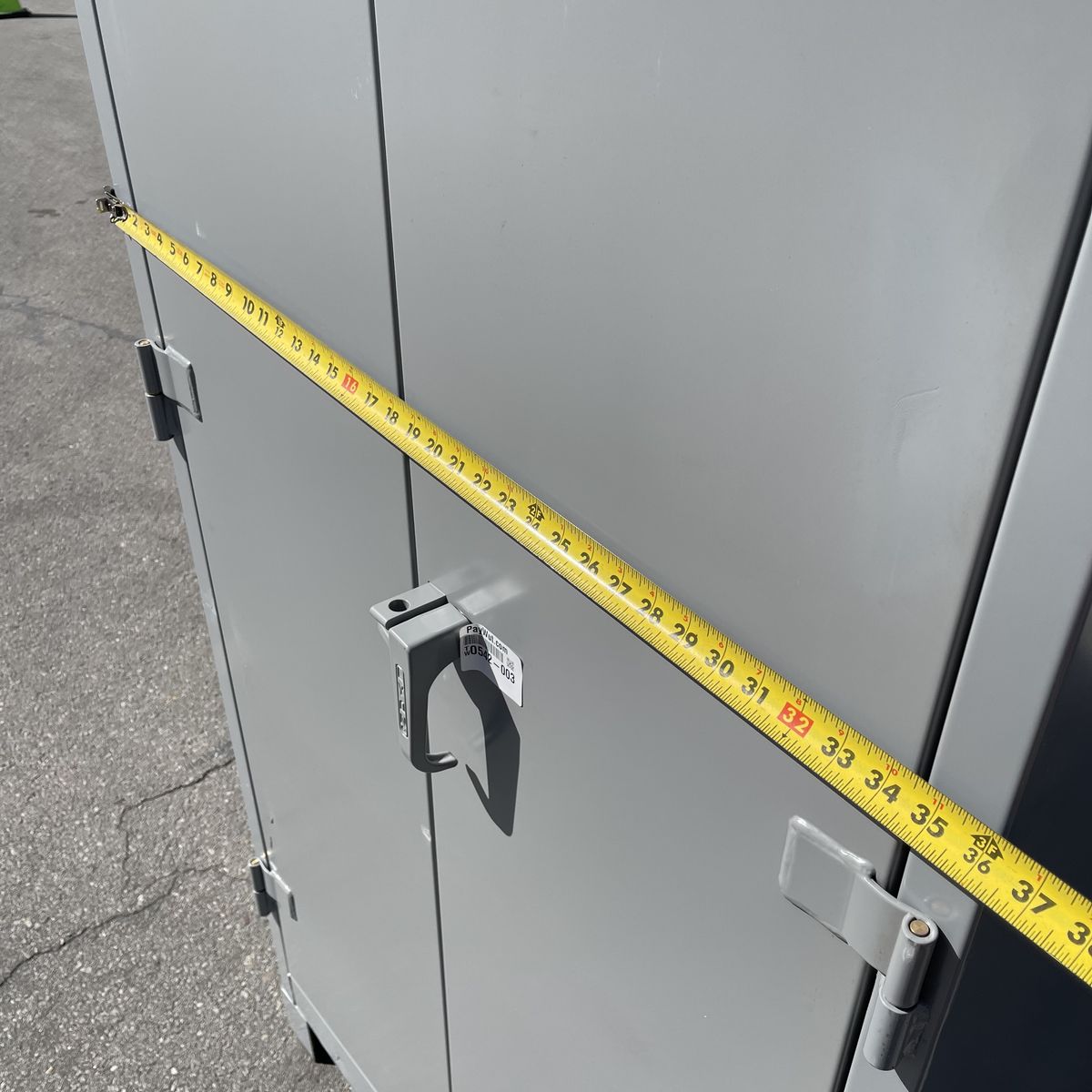 LYON All Welded Industrial Bin Cabinet W/ 64 Bins Condition: New - Some Scuffs Size: 82”x36”x21” Color: Grey MPN/Model: DD1122