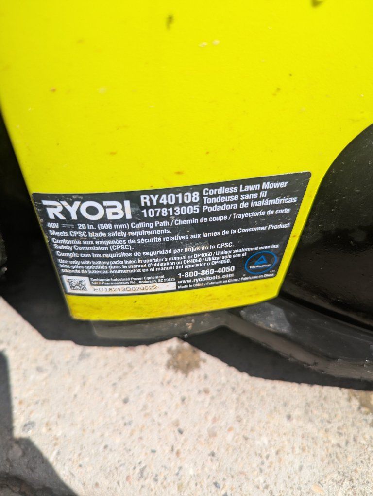 CashAppi have a Ryobi 40v electric lawn mower and weed eater with 1 good 5.0ah battery (and 1 6.0ah battery that doesn't seem to work but charges) i have 3 battery chargers.