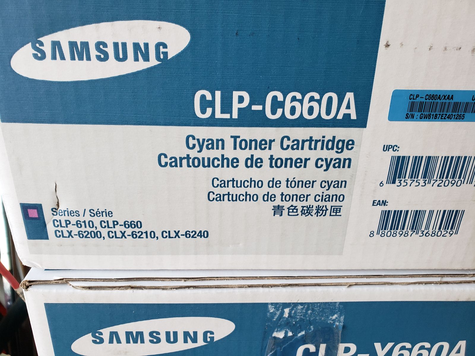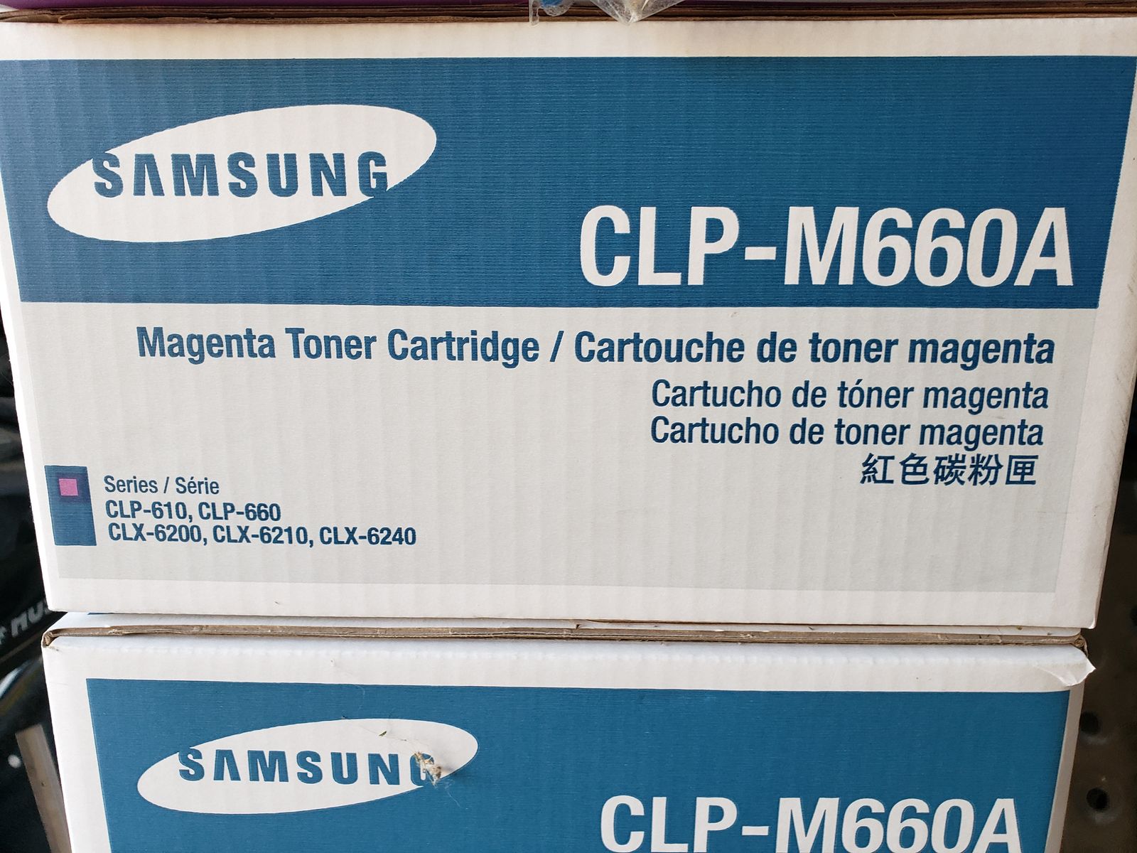 New Samsung printer cartridges CLP-660A Cyan / CLP-Y660A Yellow / CLP-K660A Black / CLP-M660A Magenta. Asking $15.00 each or $100 for entire lot.