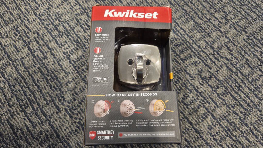 Designer style and superior security with this Kwikset Signature Series product For use on exterior doors where keyed entry and security is needed Featuring SmartKey security, which protects against advanced break-in techniques and allows you to re-key your lock yourself in seconds SmartKey security re-key technology is compatible with Kwikset (KW1) keyway or (SC1) keyway options Deadbolt operated by key outside and thumb turn inside Comes with 2 keys Deadbolt latch has 2 interchangeable faceplates - round corner and square corner Certified highest residential security, durability and finish - ANSI/BHMA Grade AAA Latch has adjustable backset 2-3/8 in. to 2-3/4 in. to fit all standard door preparations Includes round deadbolt strike 1 in. deadbolt throw Locking mechanism functions with turn piece on the interior of the lock Easily installs in minutes with just a screwdriver