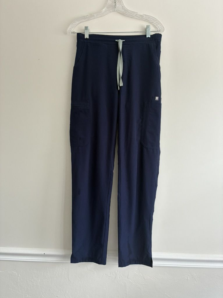 FIGS Navy Casma Three-Pocket Scrub Top and High Waisted Navy Isabel Wide Leg Scrub Pants
