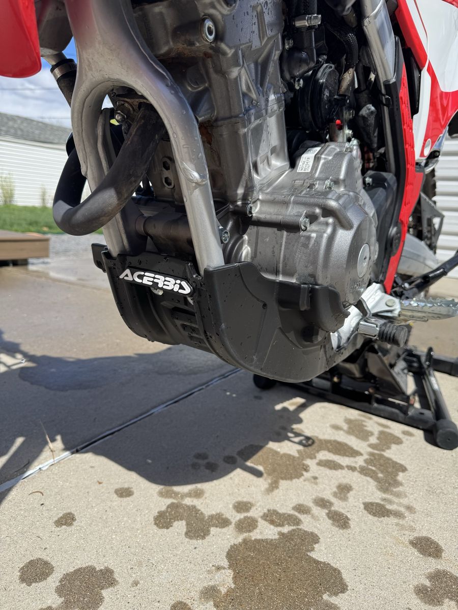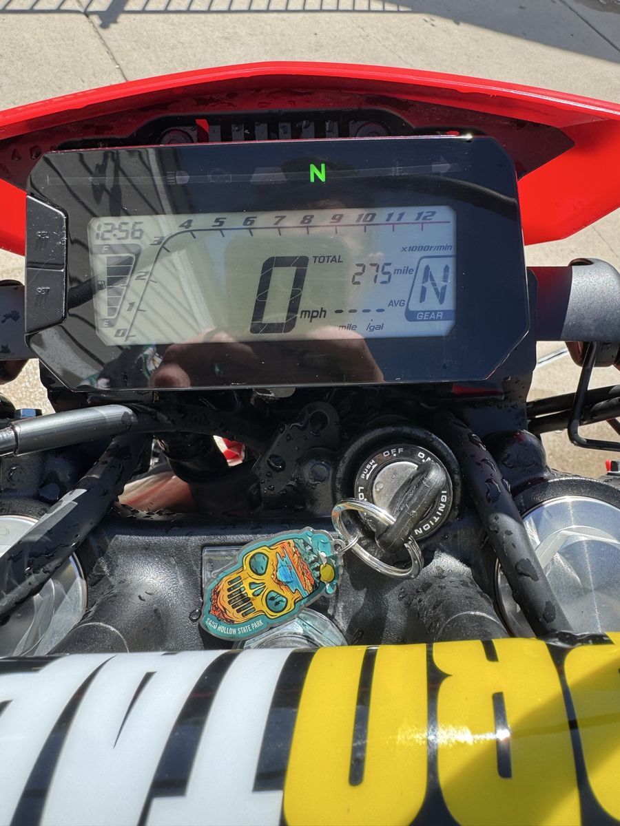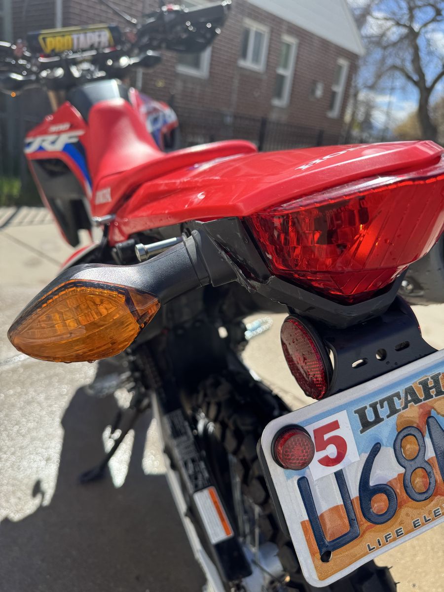 A couple of scuffs but all the plastic is intact. The left turn signal is broken and needs to be replaced or zip tied.