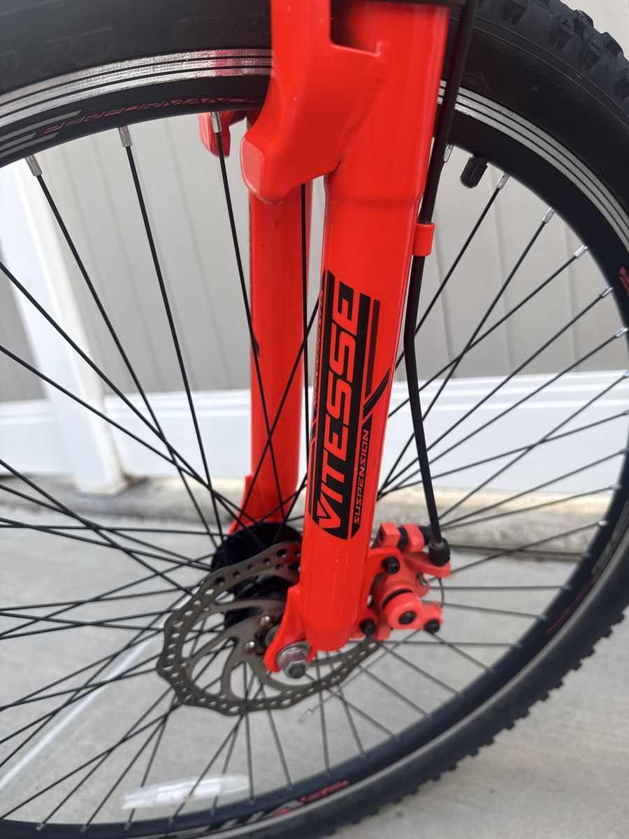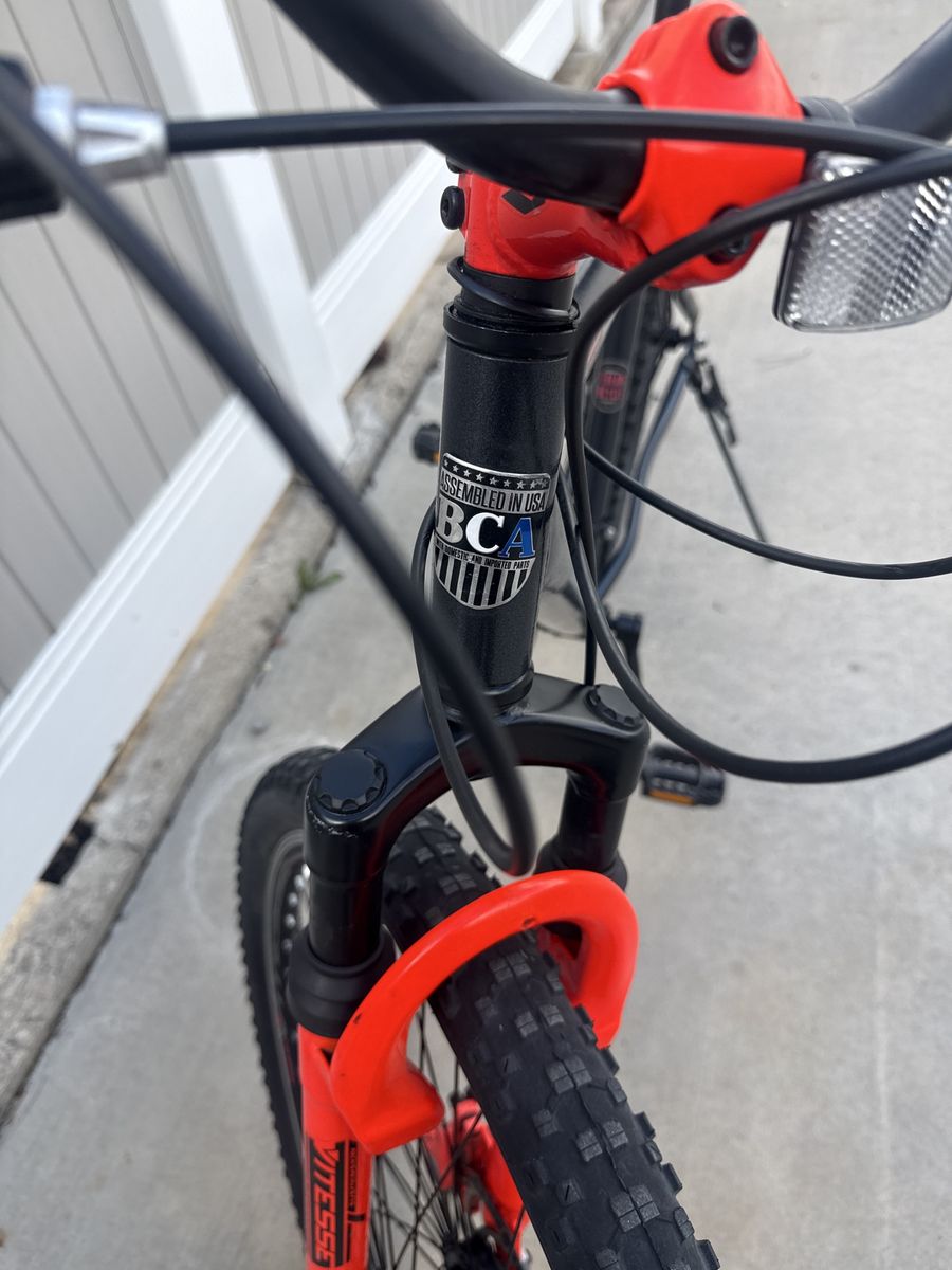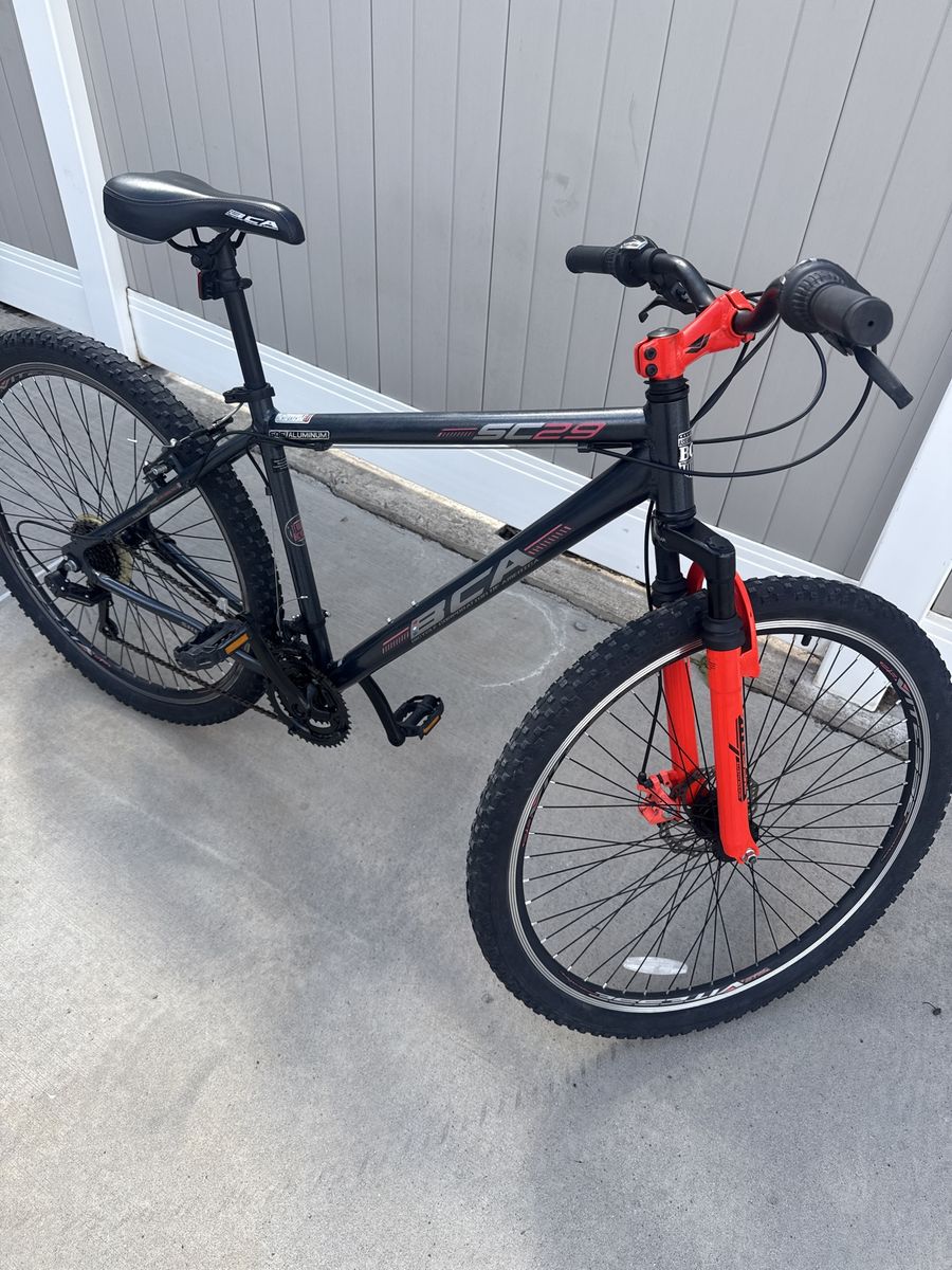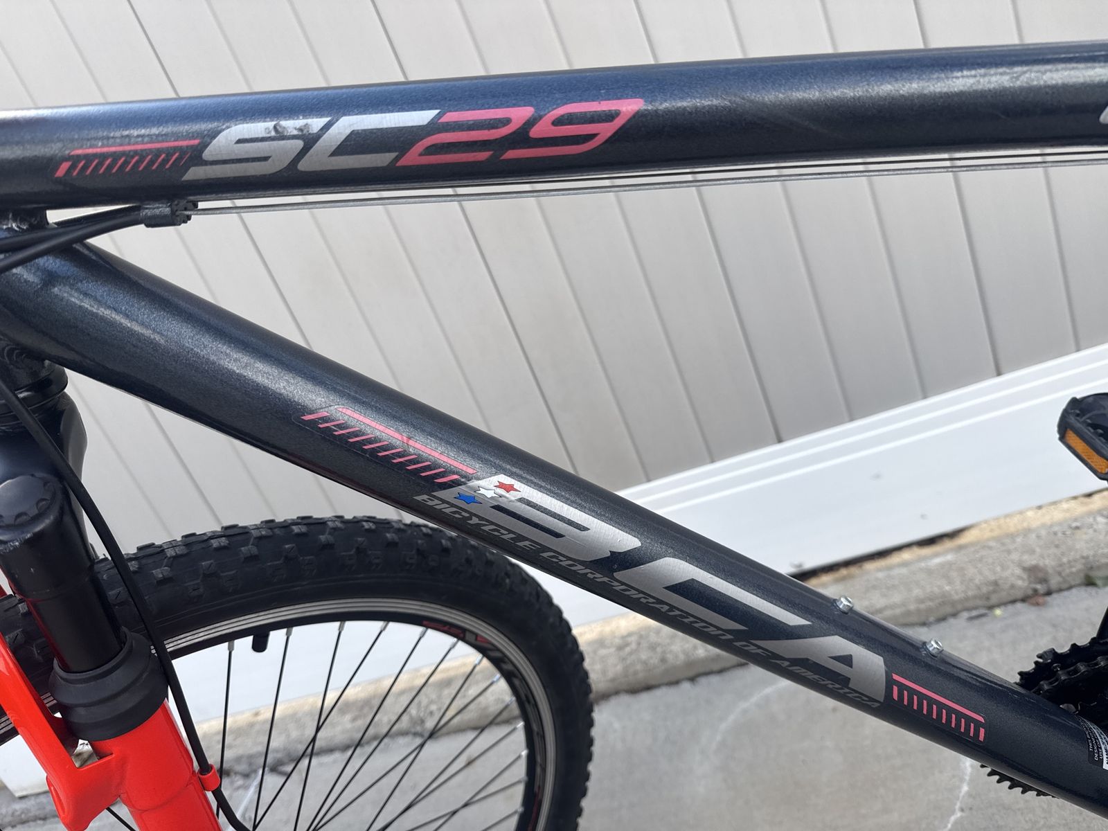 VenmoBicycle Corporation of America or “BCA” This is a 29 inch Mountain Bike with Shimano rear derailer and Shimano front derailer. This bike shifts easily through all gears and is s smooth rider. It has Vitesse front fork suspension and a front disk brake. Rear brake is a claw type brake. Brakes work well no sticking, but stopping grip is great! Bike is in great shape and ride is smooth. Hard tail rear. Rims are true and tires are in great condition. Aluminum/Steele composite frame! Great bike at a great price!!