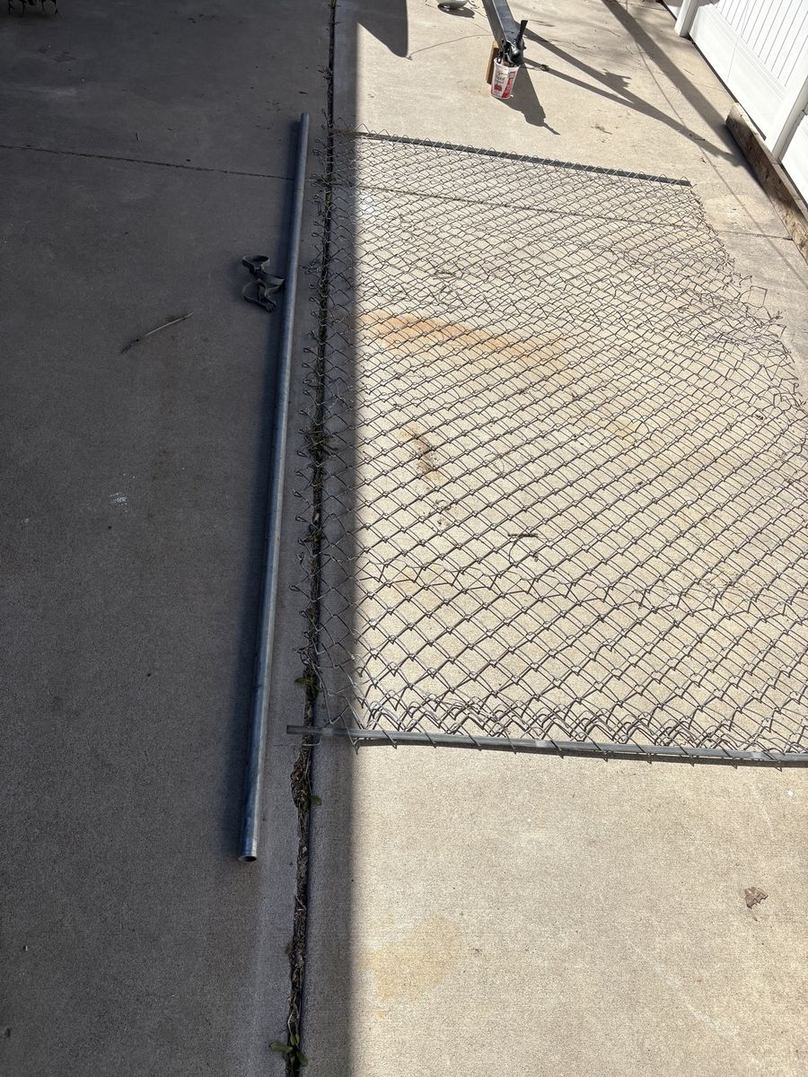 Well used section of chain link fence including top support and some hardware. Free, FCFS