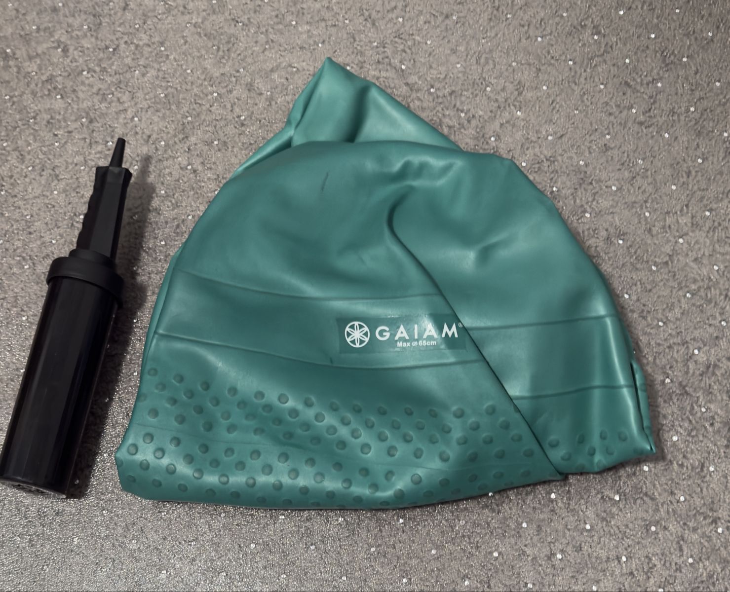 ApplePayGaiam 65cm balance ball with pump. Never used and never inflated. Bought it for my ex but he never used it and I found it while cleaning out his stuff.