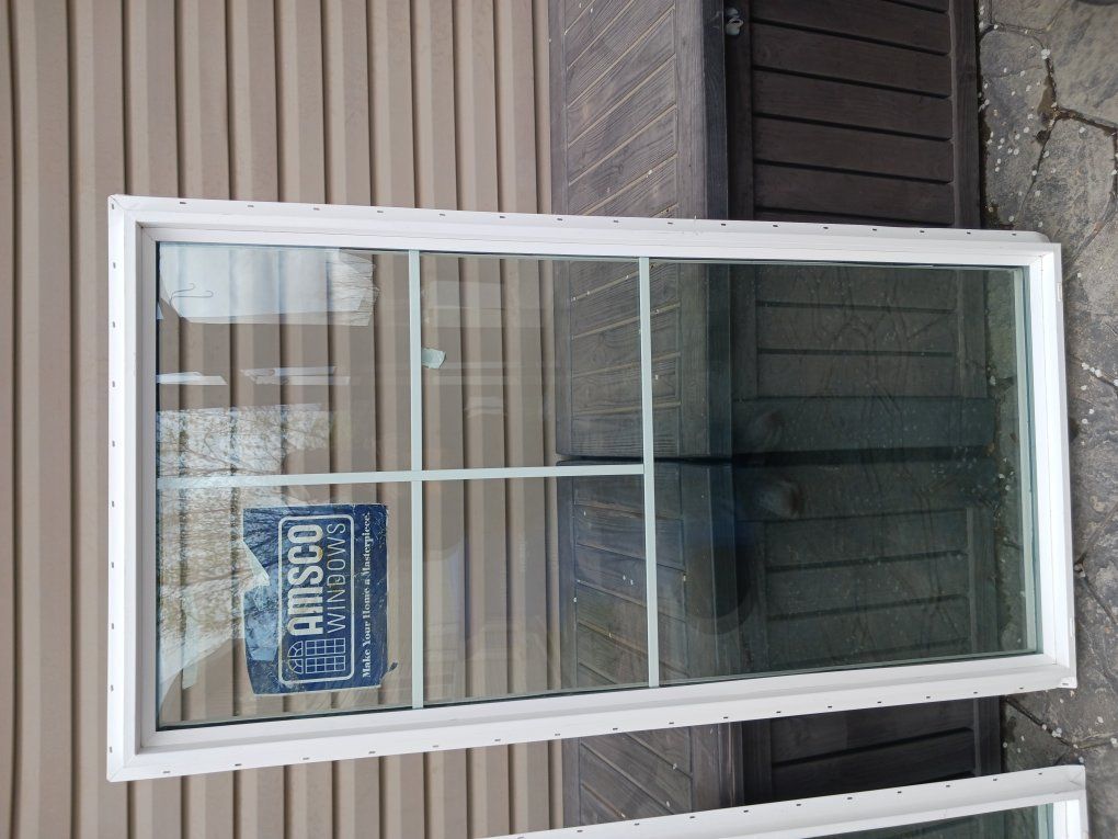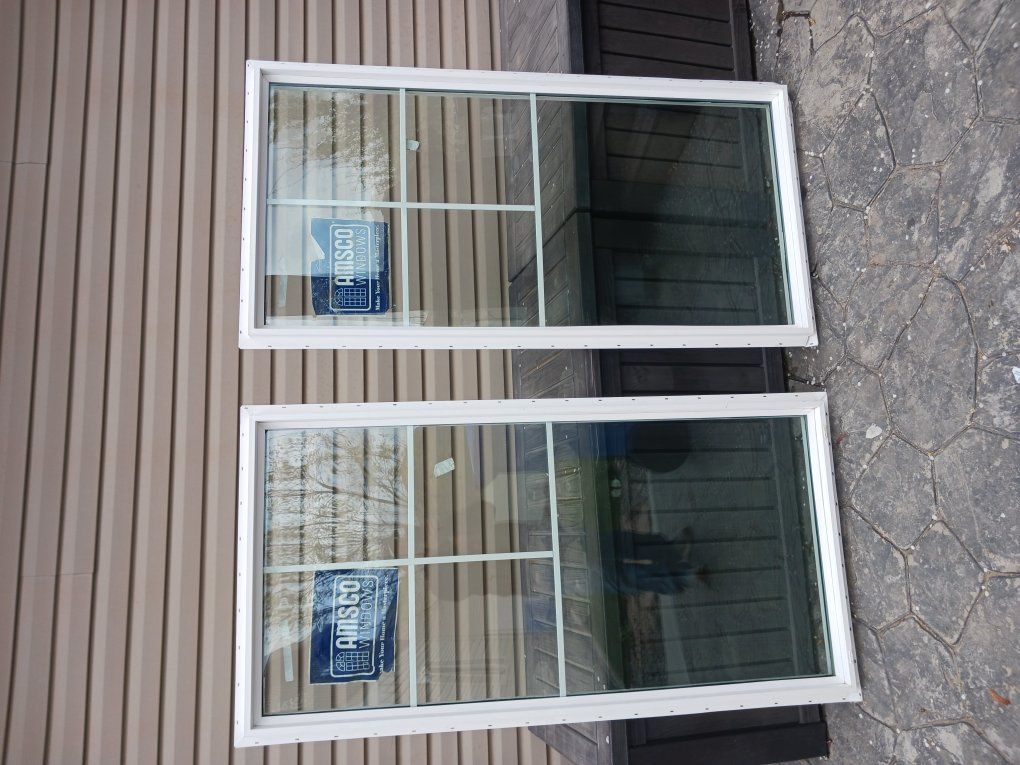 Two twin Amsco paned 29.5 in x 59.5 in windows, and one Alside paned sliding glass 48 in x 42 in windows for sale. I built a shop last year and got overzealous with the windows and had to change my plans slightly, so I ended up with too many windows; so, I have these 3 never been installed windows. They have been stored inside and everything works well and they would work great in a shop or an addition. The paned windows dress it up a little compared to plane (non-paned) windows, and will add some class to your project.