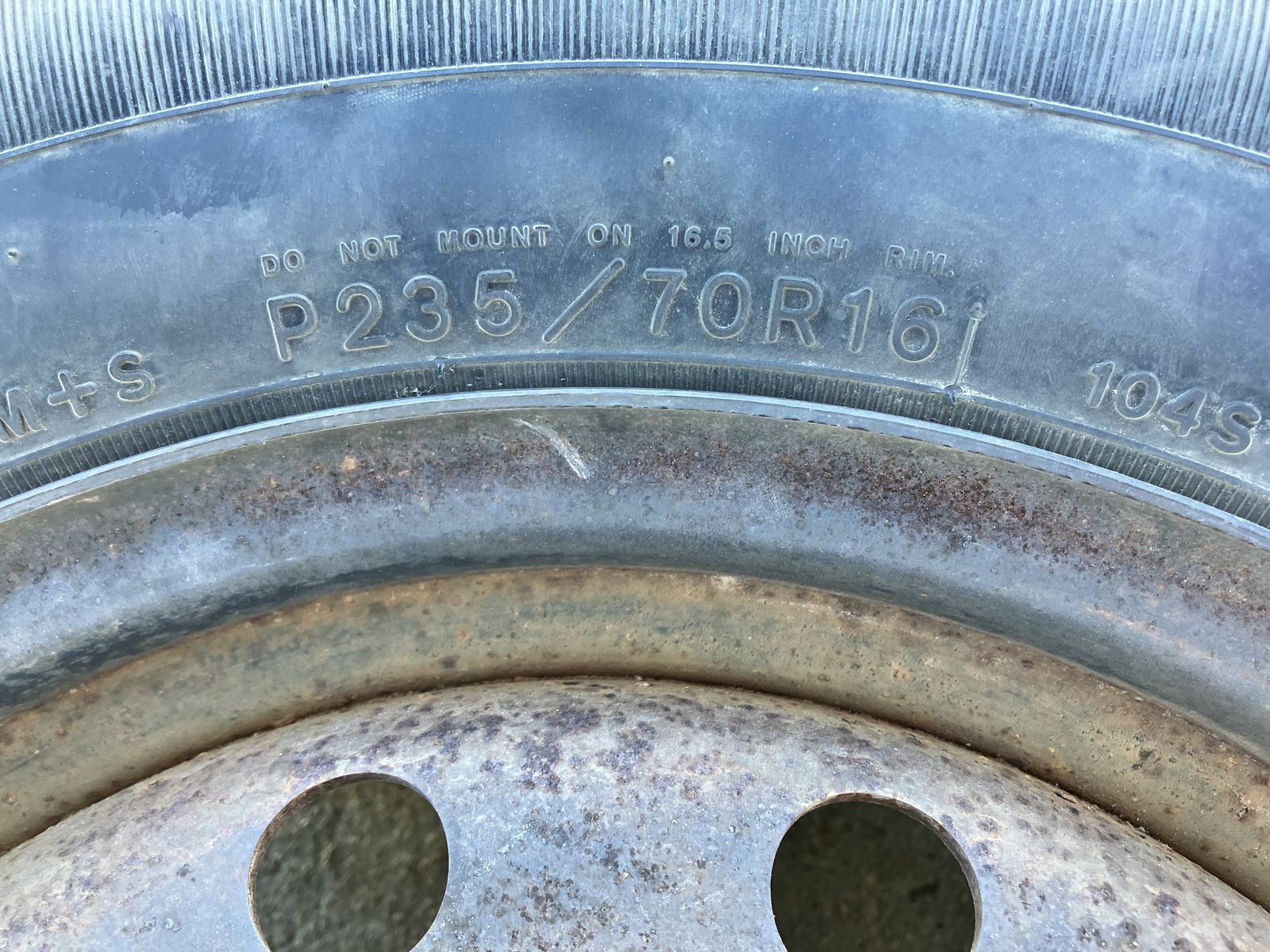 FREE Single Goodyear P235/70R16 tire. Treads are still in great shape. Rim is fairly rusted. A tire shop won't take it because of its rust. I have no need for it.