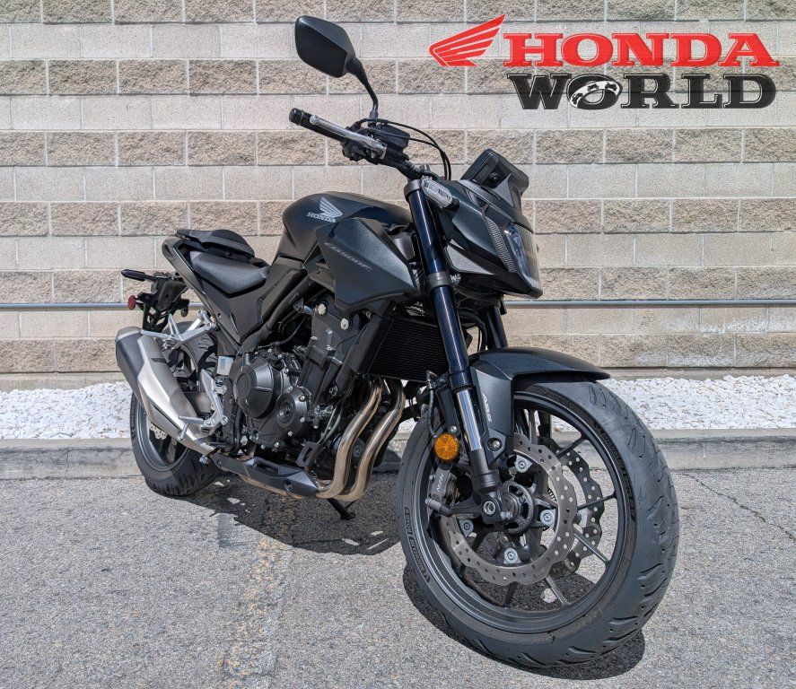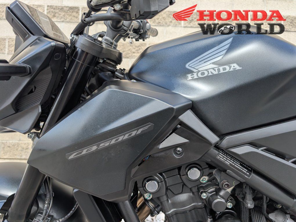 ApplePayTurn heads and carve corners with the 2025 Honda CB500F – the perfect naked bike for riders who want aggressive streetfighter looks, smooth performance, and Honda's legendary reliability, all at an unbeatable value. Powered by a proven 471cc liquid-cooled parallel-twin engine, this DOHC machine delivers responsive low-end torque and eager mid-range pull, making it ideal for commuting, weekend canyon rides, or just enjoying the twisties. With precise PGM-FI fuel injection, a smooth-shifting 6-speed transmission, and a slipper/assist clutch, the CB500F offers effortless control whether you're launching from a stop or downshifting into tight turns. The 2025 model brings a sharp, modern edge with aggressive new styling that enhances aerodynamics and presence on the road. It features a commanding upright riding position, a lightweight diamond-tube frame, and a nearly 2-pound-lighter swingarm for nimble, confidence-inspiring handling. Premium suspension includes 41mm Showa SFF-BP inverted forks up front and a Pro-Link rear shock – both with 4.7 inches of travel – for a plush yet sporty ride. Safety and convenience come standard with ABS on dual 296mm front discs and a 240mm rear, plus Honda Selectable Torque Control (traction control) to keep you planted in varied conditions. Stay connected with the bright, easy-to-read 5-inch TFT display that supports Honda RoadSync for navigation, music, and calls. Key specs that make it a standout: Seat height: 31.1 inches (accessible for a wide range of riders) Fuel capacity: 4.5 gallons (great range for longer adventures) Curb weight: 414 lbs (light and flickable for its class) Available in sleek Matte Black Metallic