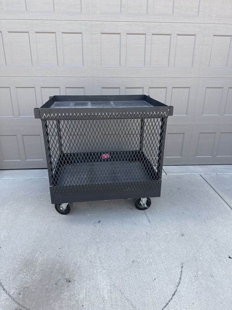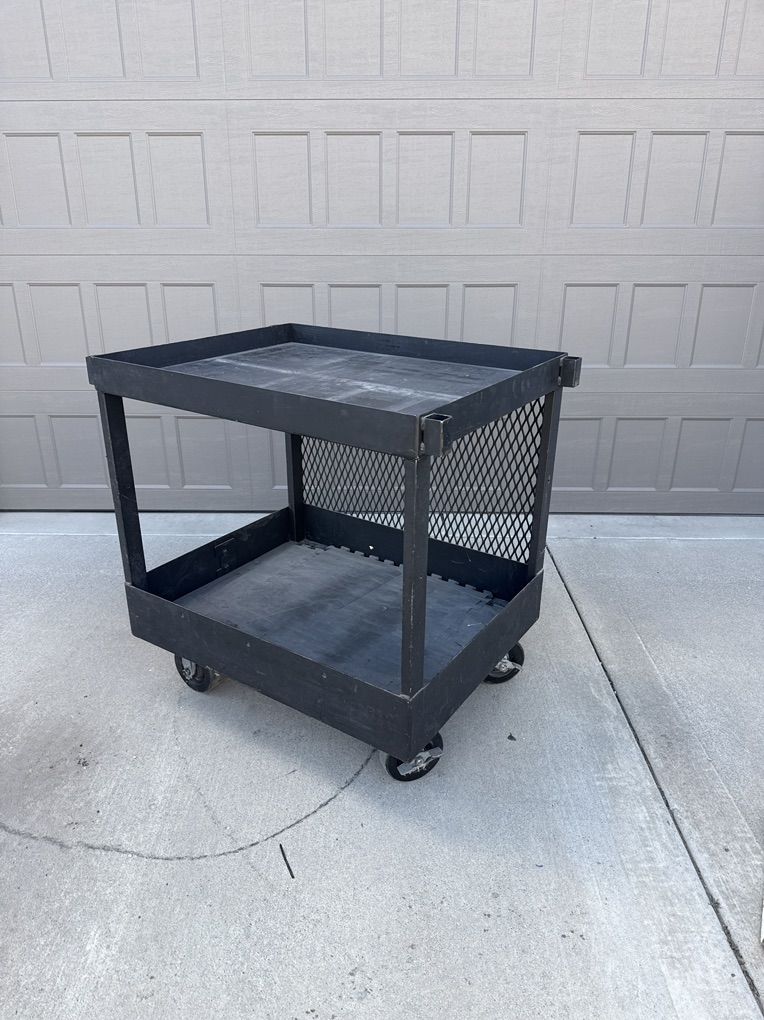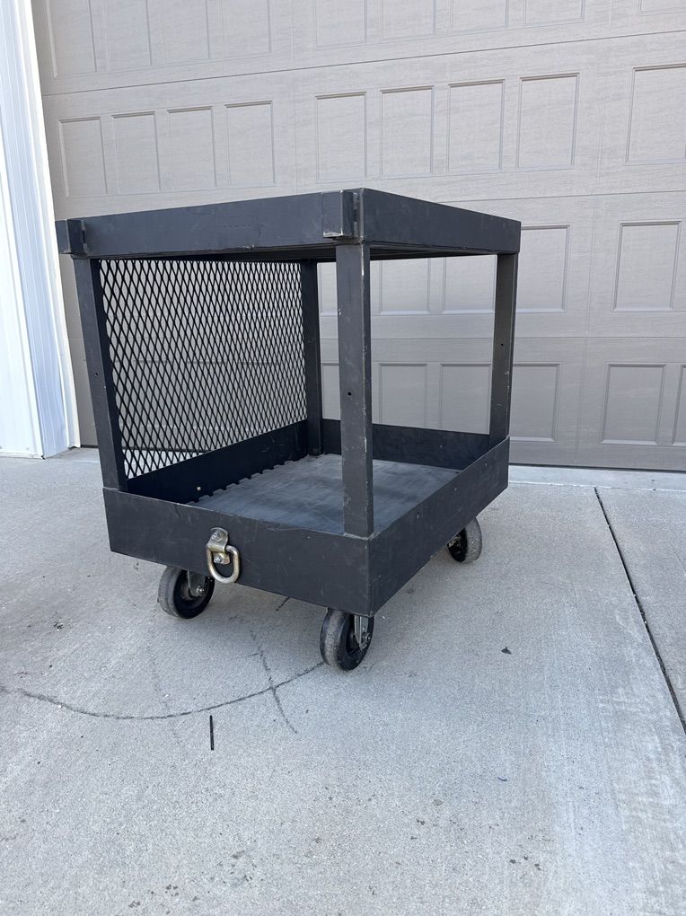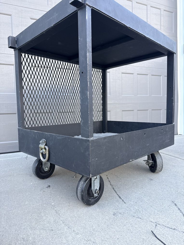 VenmoHeavy duty metal utility cart. These carts are custom built to haul 1000 pounds of steel plate. Over built and incredibly durable. Dimensions are. 34 inches long. 27 inch’s deep. 36” tall. 2” lip around top area. 4 heavy duty castors with locking wheel. Winch ready tow ring on one end. I have 5 available. Pick up in Draper. Delivery available for a fee.