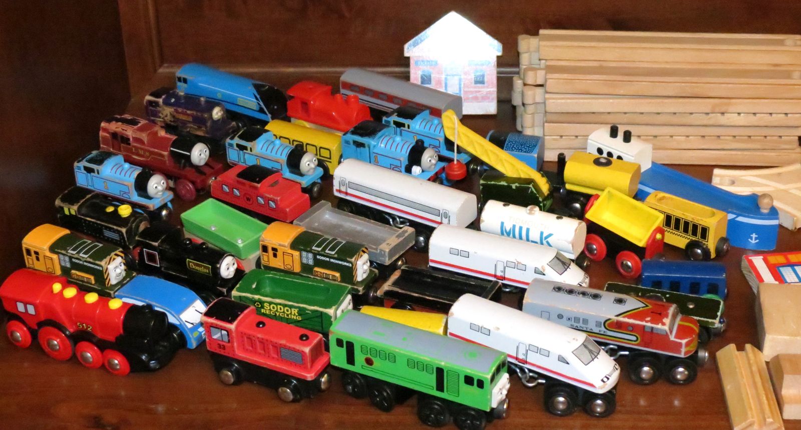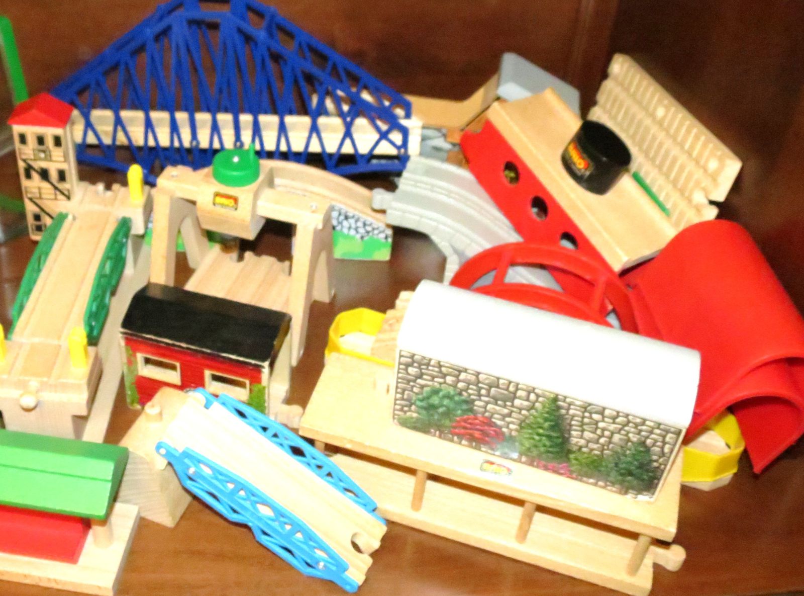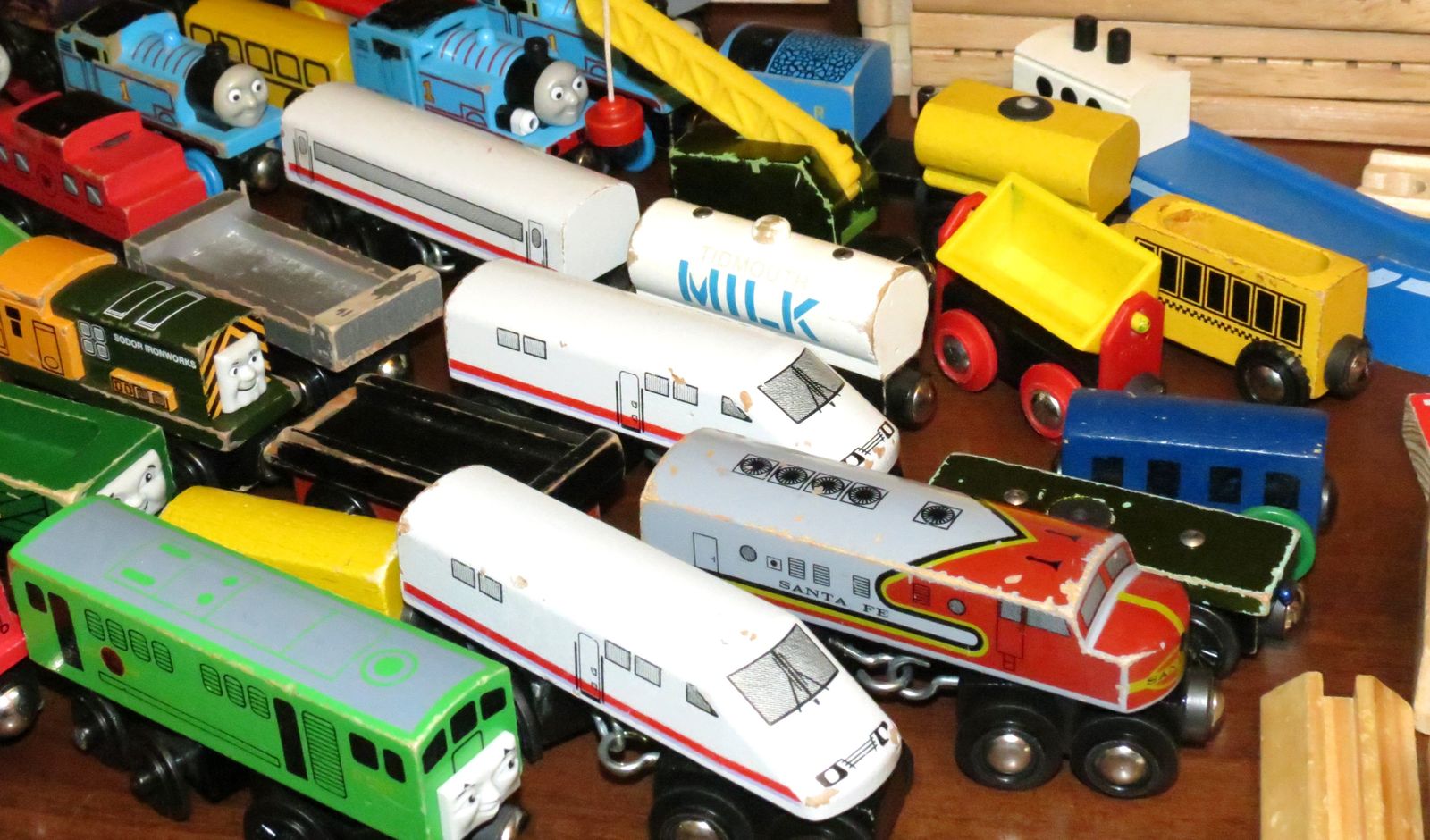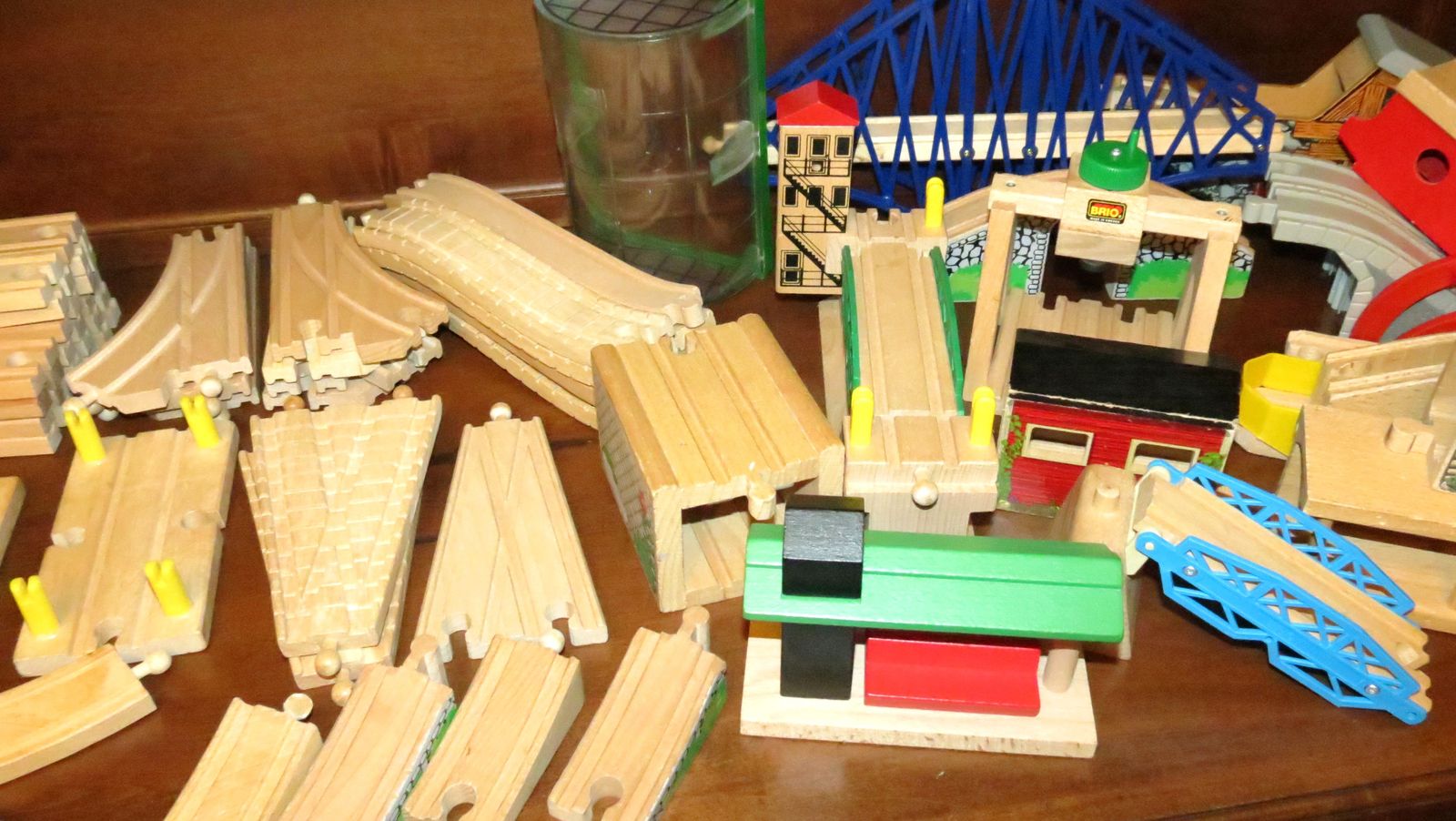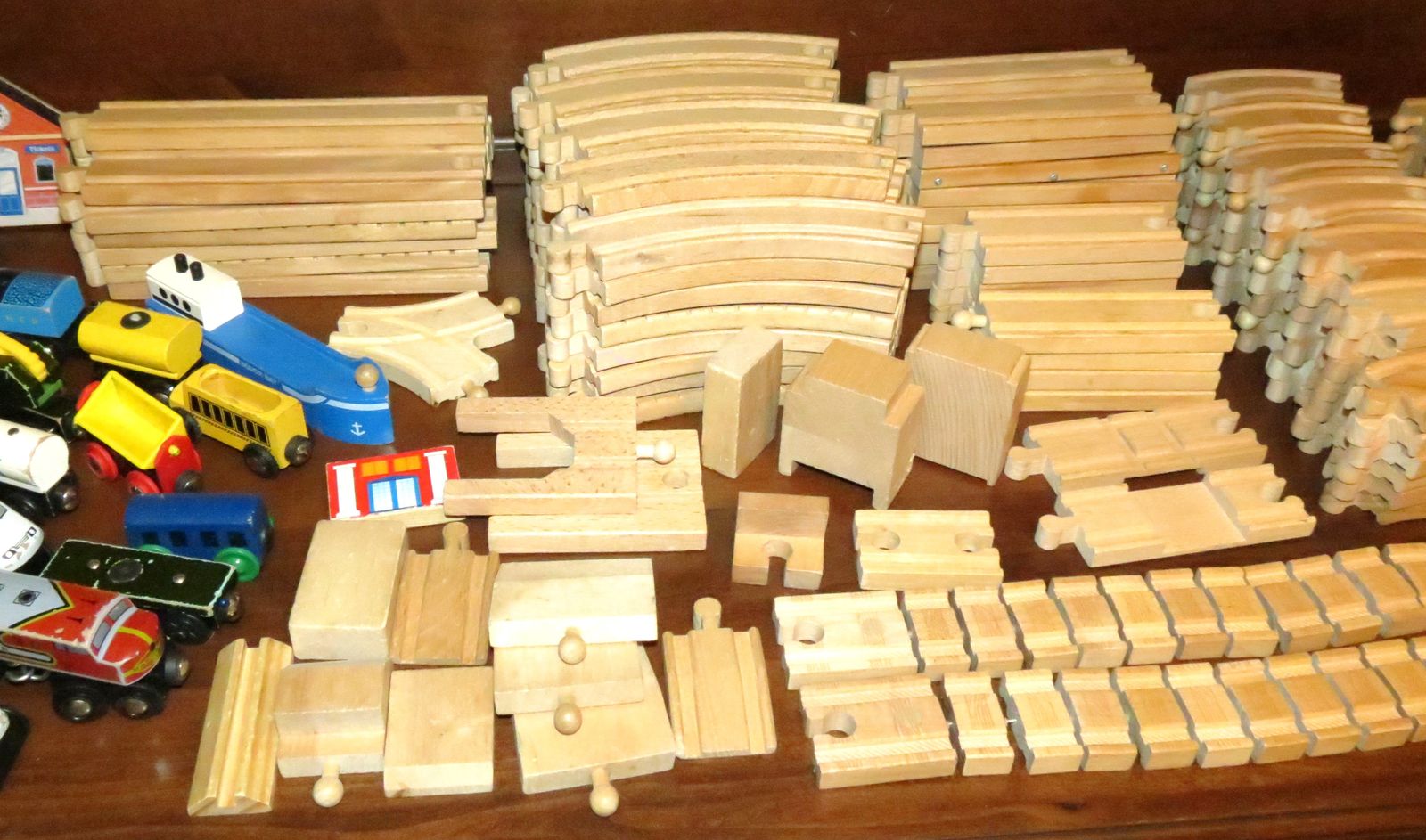 VenmoHuge lot of Thomas, Brio, Melissa & Doug Wooden Tracks and Cars - mixed lot, but everything is compatible. 256 total pieces! It's likely the individual playsets aren't complete, but enough here to make your own epic track layouts! Note most of the cars have been well-loved - see pics for details. Tracks are very good overall. Large tote to hold everything included! Ready to go!