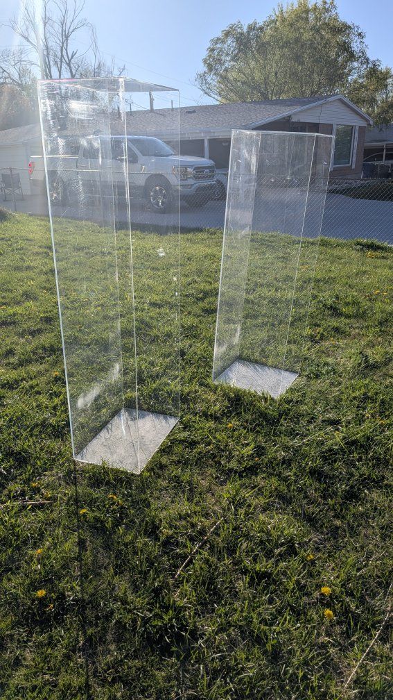 ZelleClear acrylic terrarium/ box Length 60" Width 18" Height 18" I have 2 this size, as well as 2 Length 65.25" Width 21.5" Height 14" price is $100 each thank you for your interest. message anytime if you want to purchase one or all\