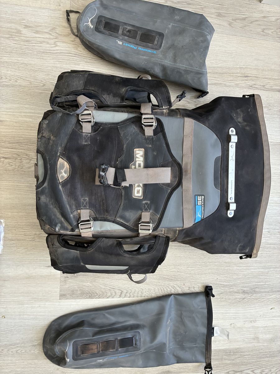 ZelleMosk Moto bags (25l / 35L) and top duffle Back 30L. Side bags used twice and top new.