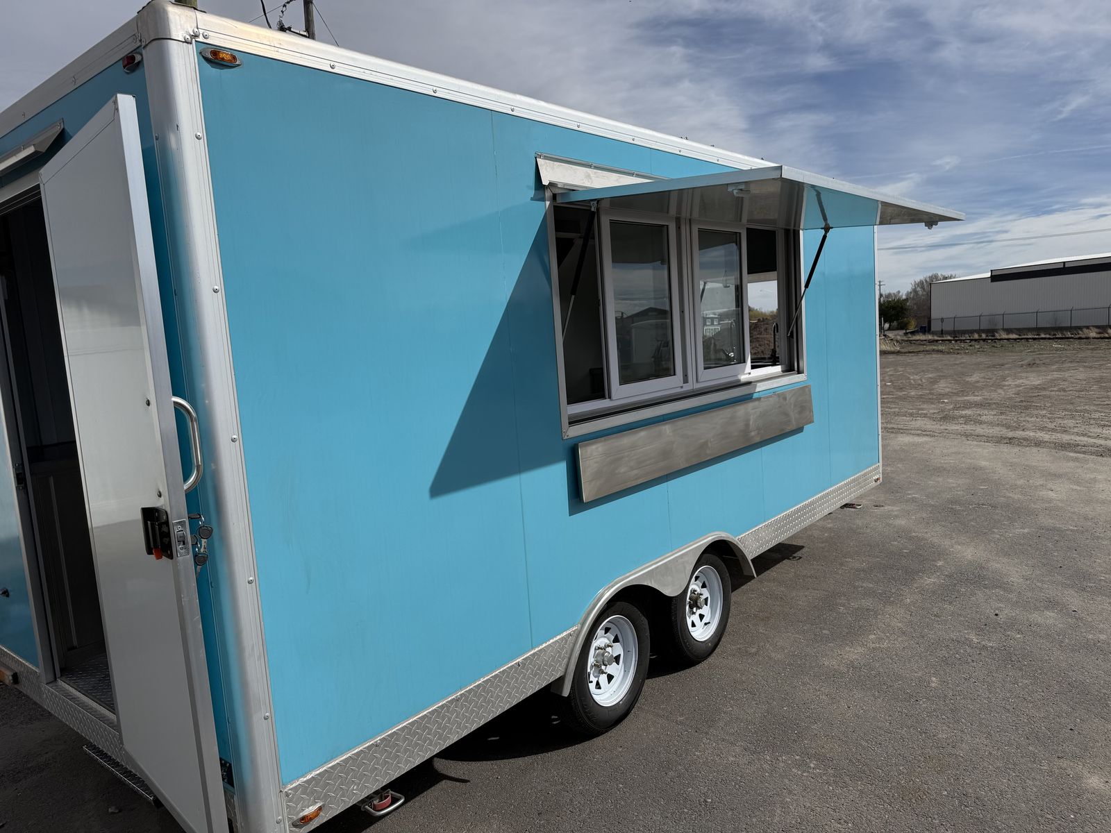 Start your new food business. Great entry point for new entrepreneurs. Looking to start or upgrade your mobile kitchen game? Check out this pristine 16ft long concession trailer, custom-built for high-volume food service. It’s got a sleek turquoise blue exterior that pops on the street, and it’s packed with pro-grade features inside. Dimensions: 16ft length, 7.9ft width, and 6.6ft floor-to-ceiling height – plenty of space to work comfortably without feeling cramped.