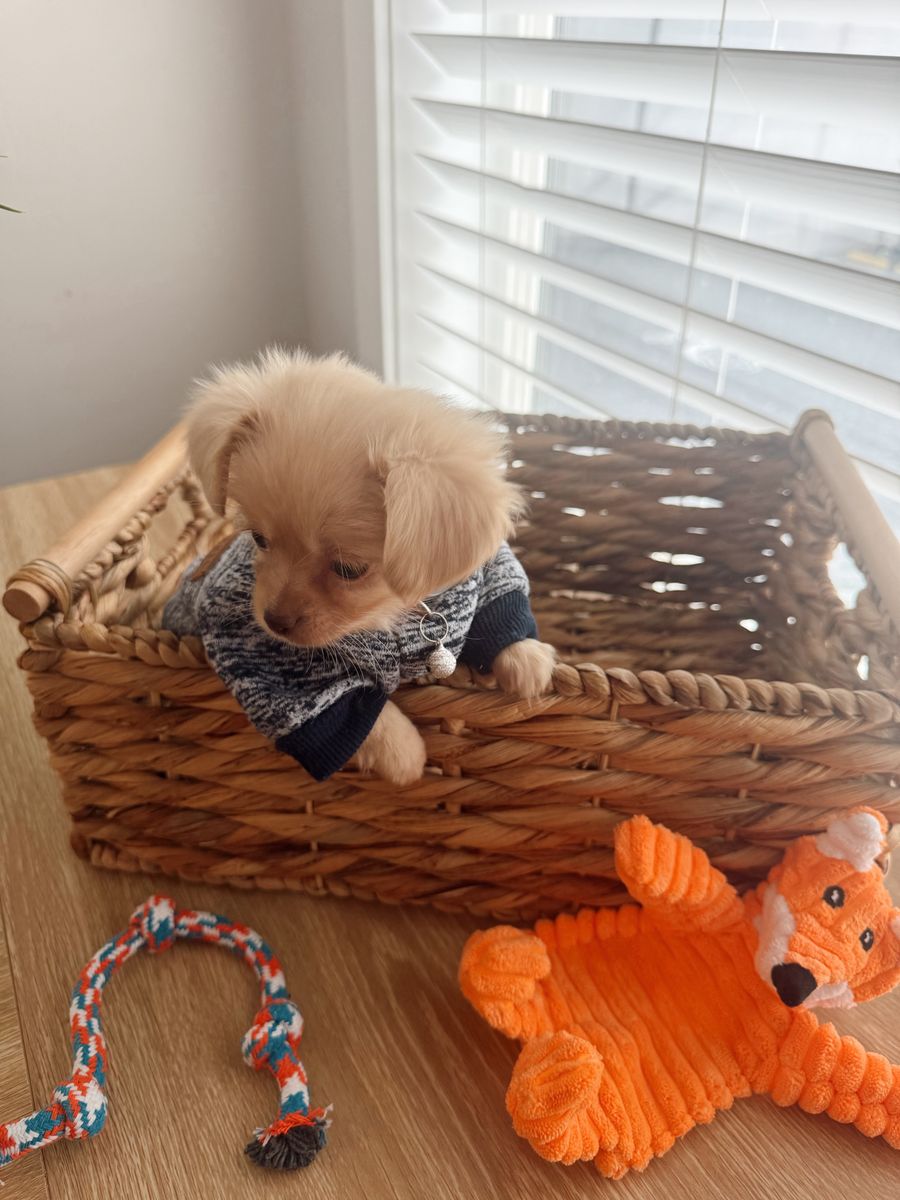 Cooper has a very sweet personality and loves his people, he loves kids and loves being carried around by my children. He is very affectionate and loving & never barks or bites! He’s very gentle.