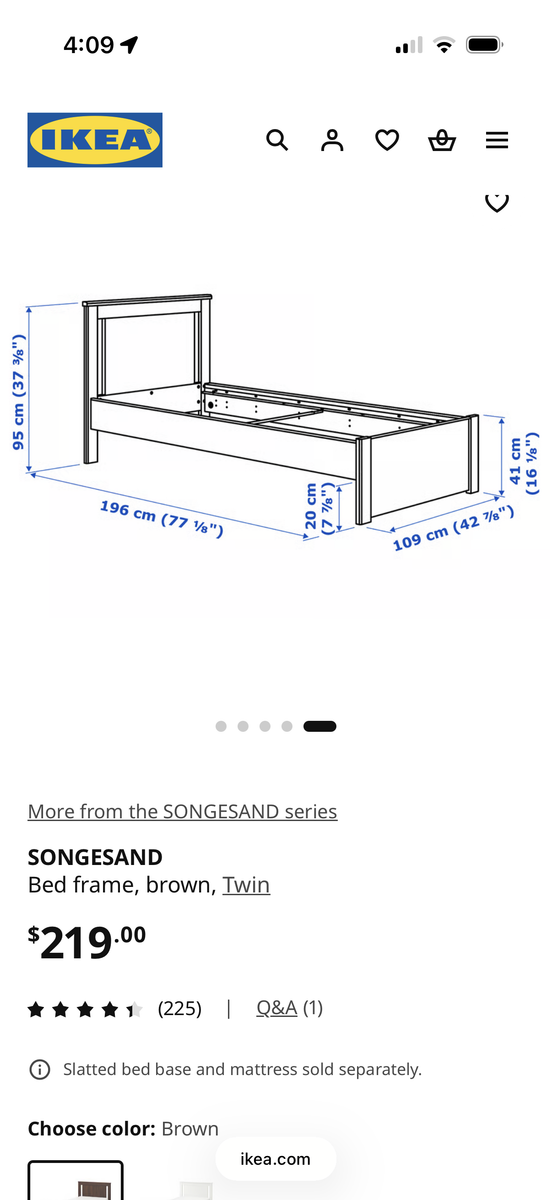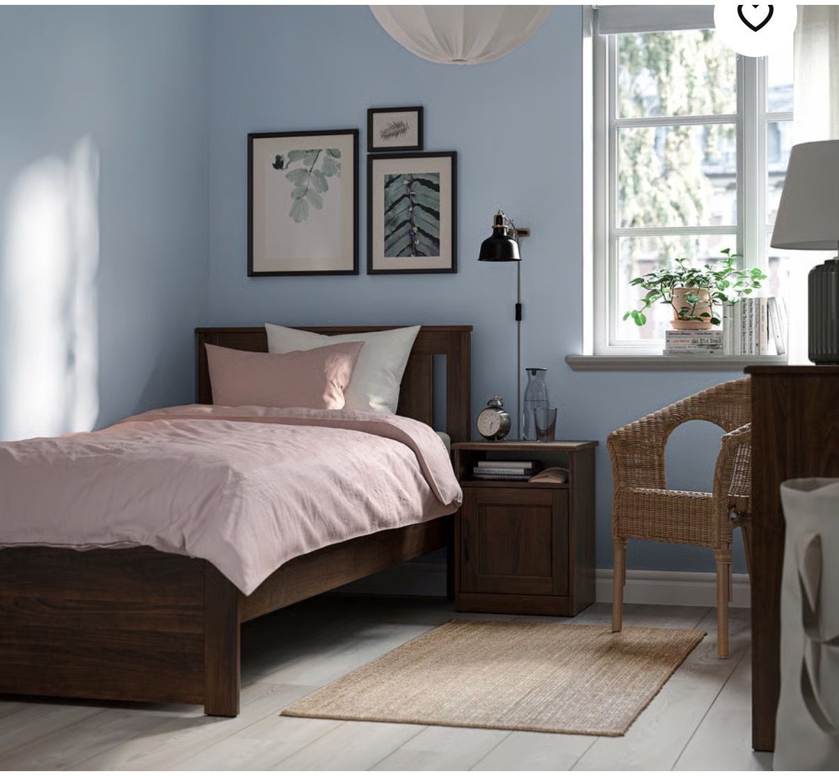 Includes the slatted bed base to support mattress. A sturdy bed frame with soft, profile edges and high legs. A classic shape that will last for many years.