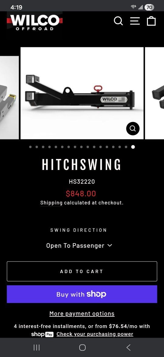 VenmoThis is a complete Wilco Offroad hitch swing. HS32220 Swings to passenger side. Retails at $848. Please text.
