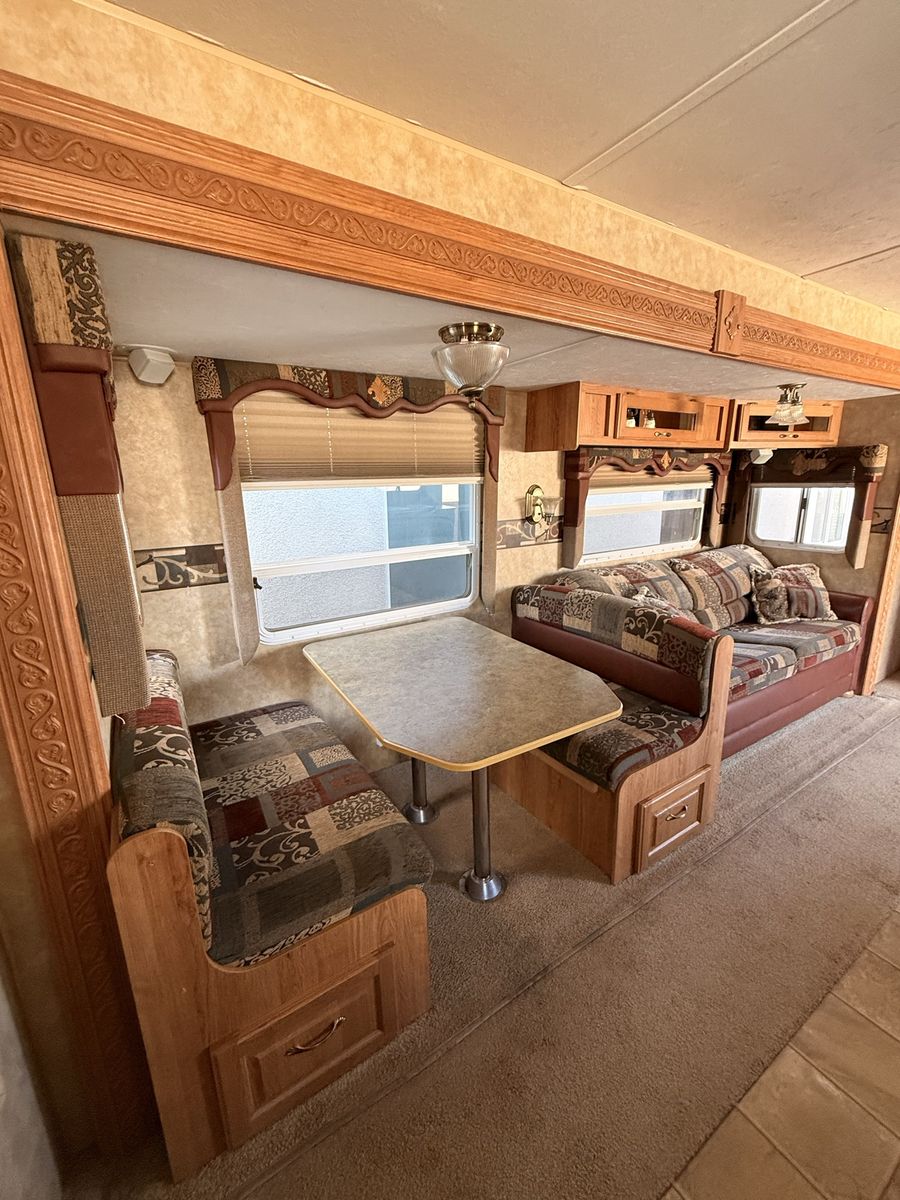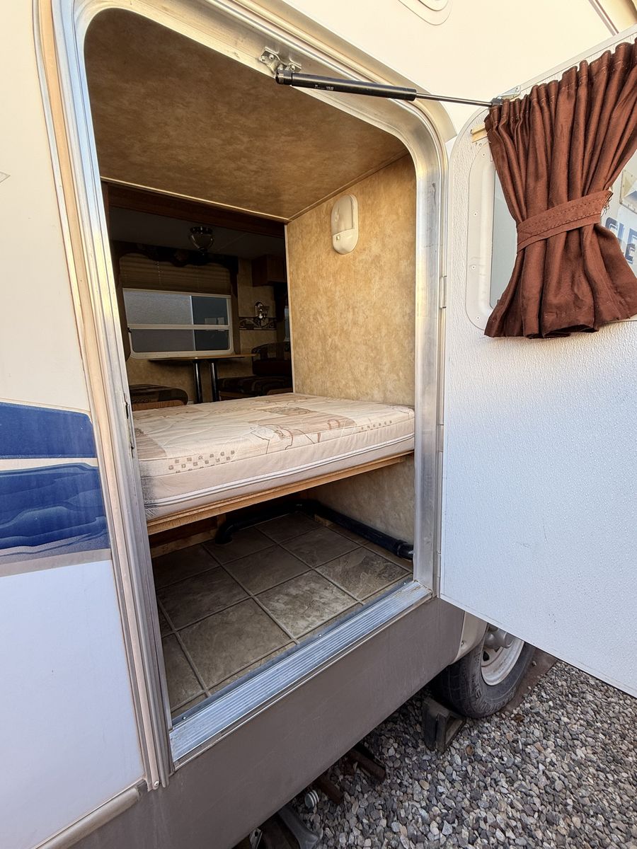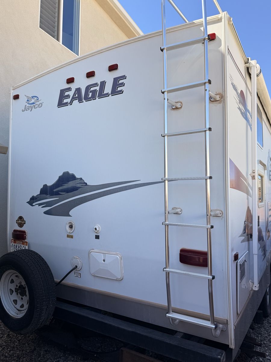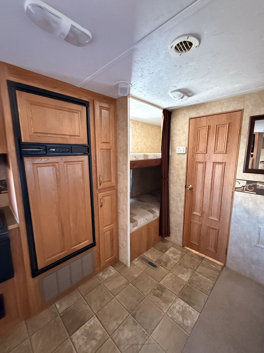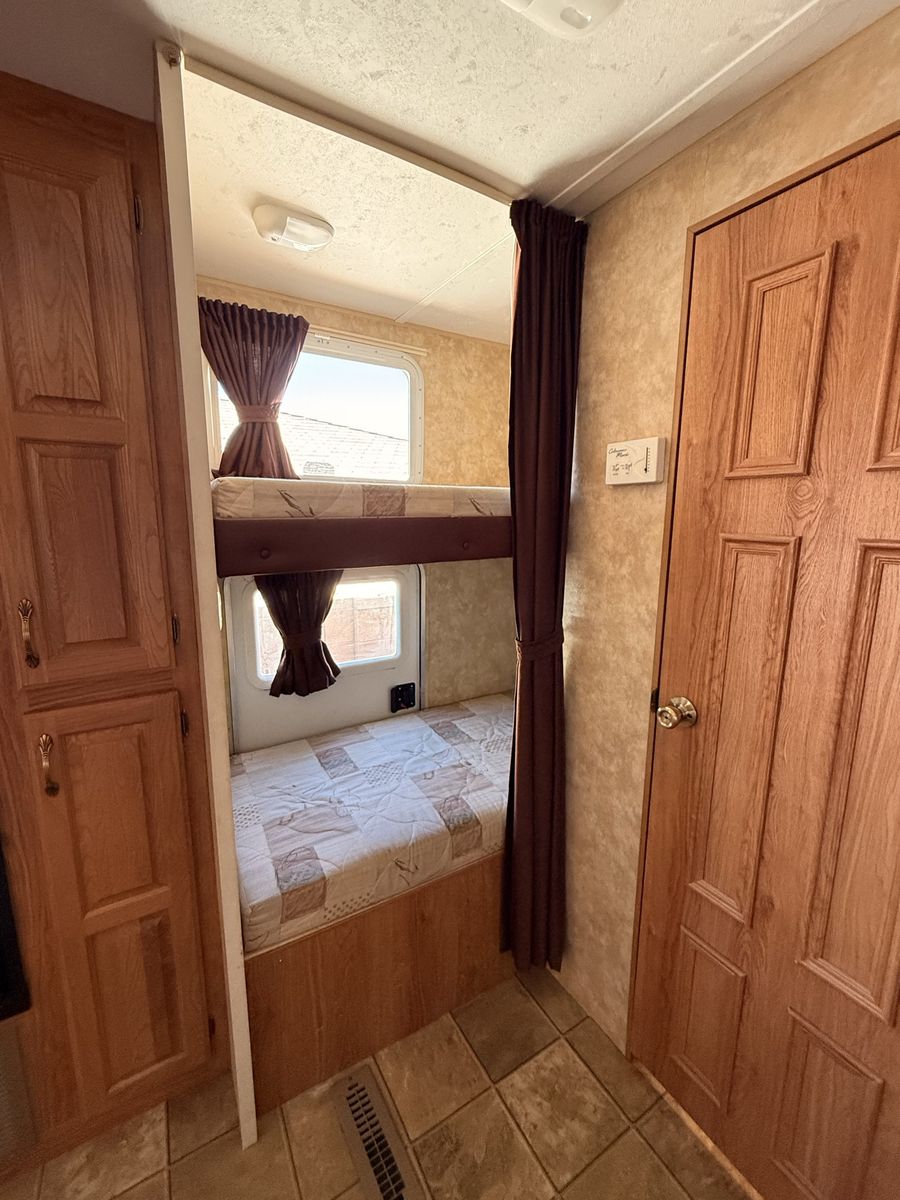 Come see how CLEAN and well cared for this trailer is—you won’t find one in this great of condition for its year! 2007 Jayco Eagle Bunkhouse. Has a massive super slide that makes for tons of open living space making this trailer feel so roomy! Queen bed up front with double closets and storage space above the headboard. The bed also lifts up for extra storage underneath. The kitchen area has lots of cupboards, gas/electric fridge and freezer, double sink, stove, oven, and microwave. This trailer has two bunks, a table that makes into a bed, and a hide-a-bed couch. Sleeps 8 pretty easy. The bottom bunk flips up to give you a large storage area for bringing along x-large items with an access door on the outside. The bathroom has a full tub/shower combo with a skylight above, and large linen closet. We have loved this trailer for the amount of open living area and how much storage it has! Come see for yourself! Asking $8,450 obo. Cash and carry only. Will not deliver.