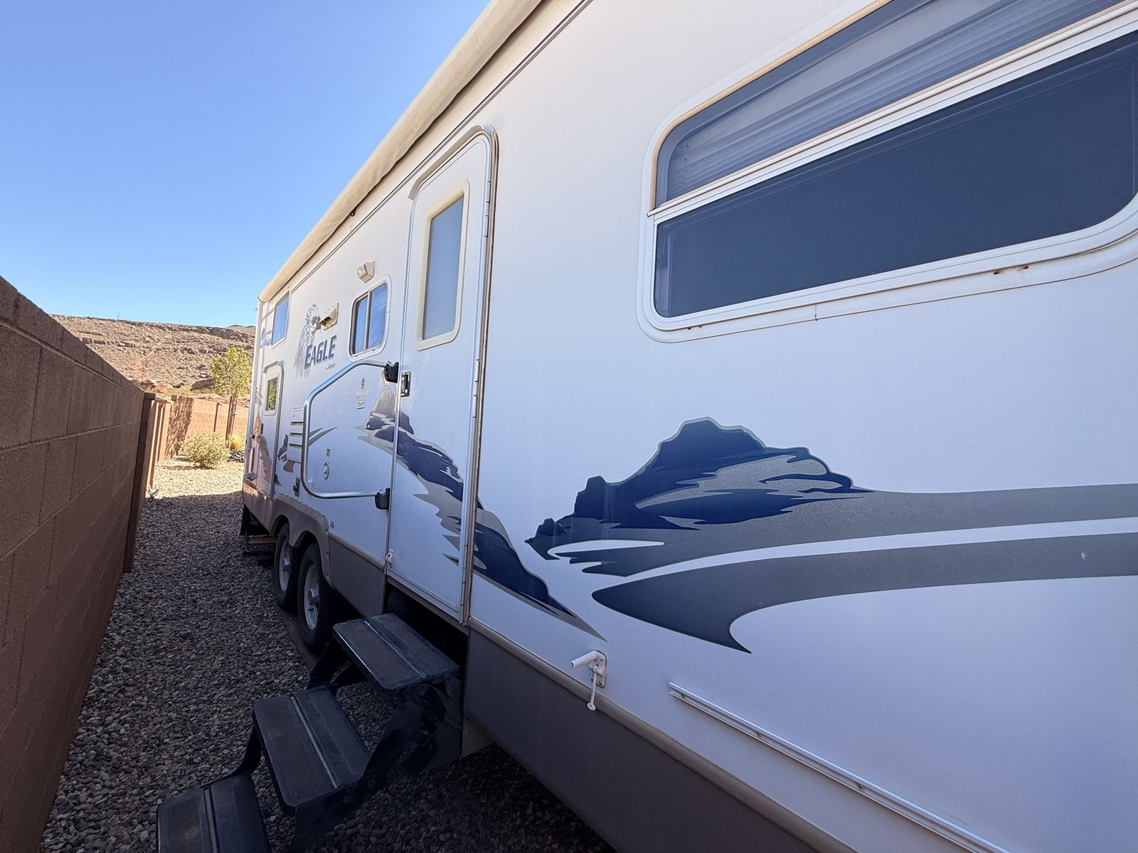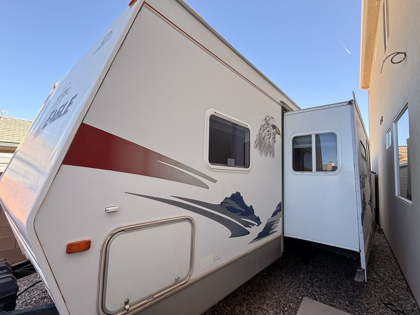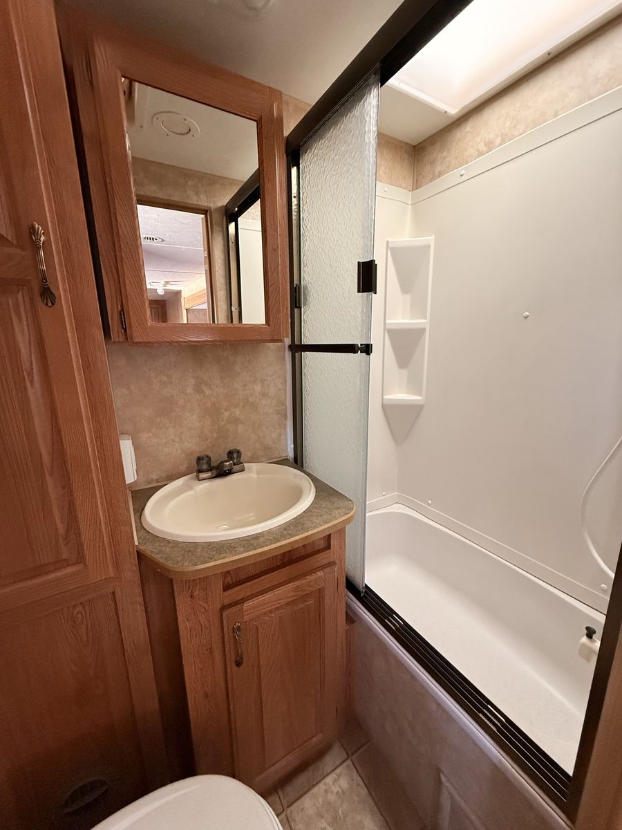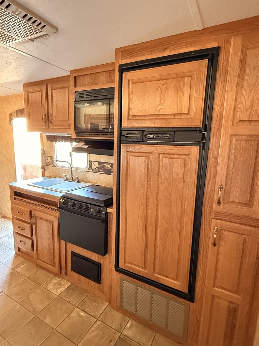 Come see how CLEAN and well cared for this trailer is—you won’t find one in this great of condition for its year! 2007 Jayco Eagle Bunkhouse. Has a massive super slide that makes for tons of open living space making this trailer feel so roomy! Queen bed up front with double closets and storage space above the headboard. The bed also lifts up for extra storage underneath. The kitchen area has lots of cupboards, gas/electric fridge and freezer, double sink, stove, oven, and microwave. This trailer has two bunks, a table that makes into a bed, and a hide-a-bed couch. Sleeps 8 pretty easy. The bottom bunk flips up to give you a large storage area for bringing along x-large items with an access door on the outside. The bathroom has a full tub/shower combo with a skylight above, and large linen closet. We have loved this trailer for the amount of open living area and how much storage it has! Come see for yourself! Asking $8,450 obo. Cash and carry only. Will not deliver.