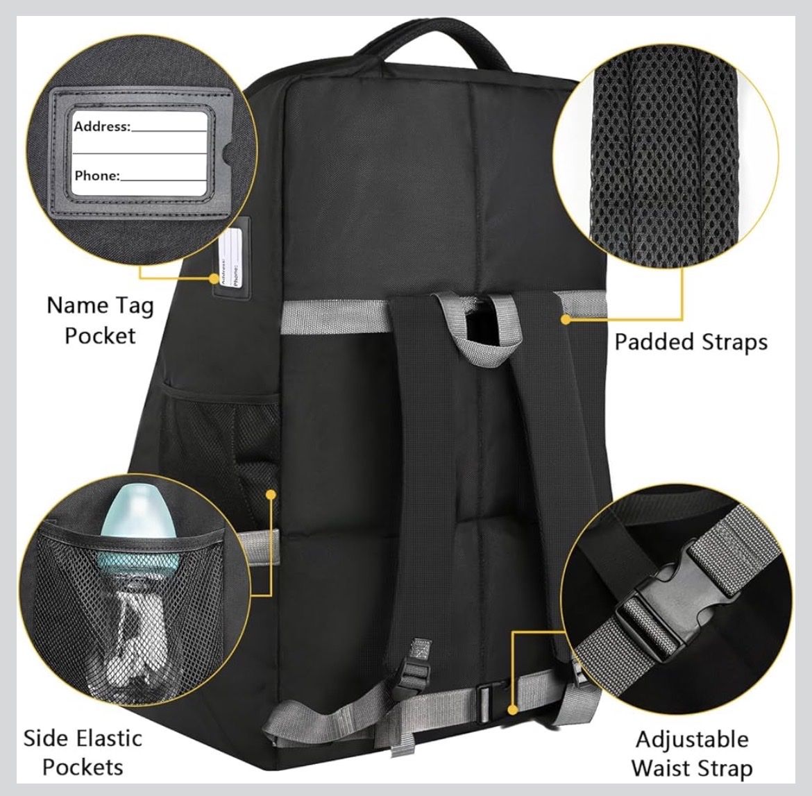 YOREPEK Car Seat airplane Travel Bag Backpack for Airplane, Heavy Duty Car Seat Bags for Air Travel, Carseat Cover for Airplane Travel with Shoulder Strap, Car Seats Carrier for Airport, Black