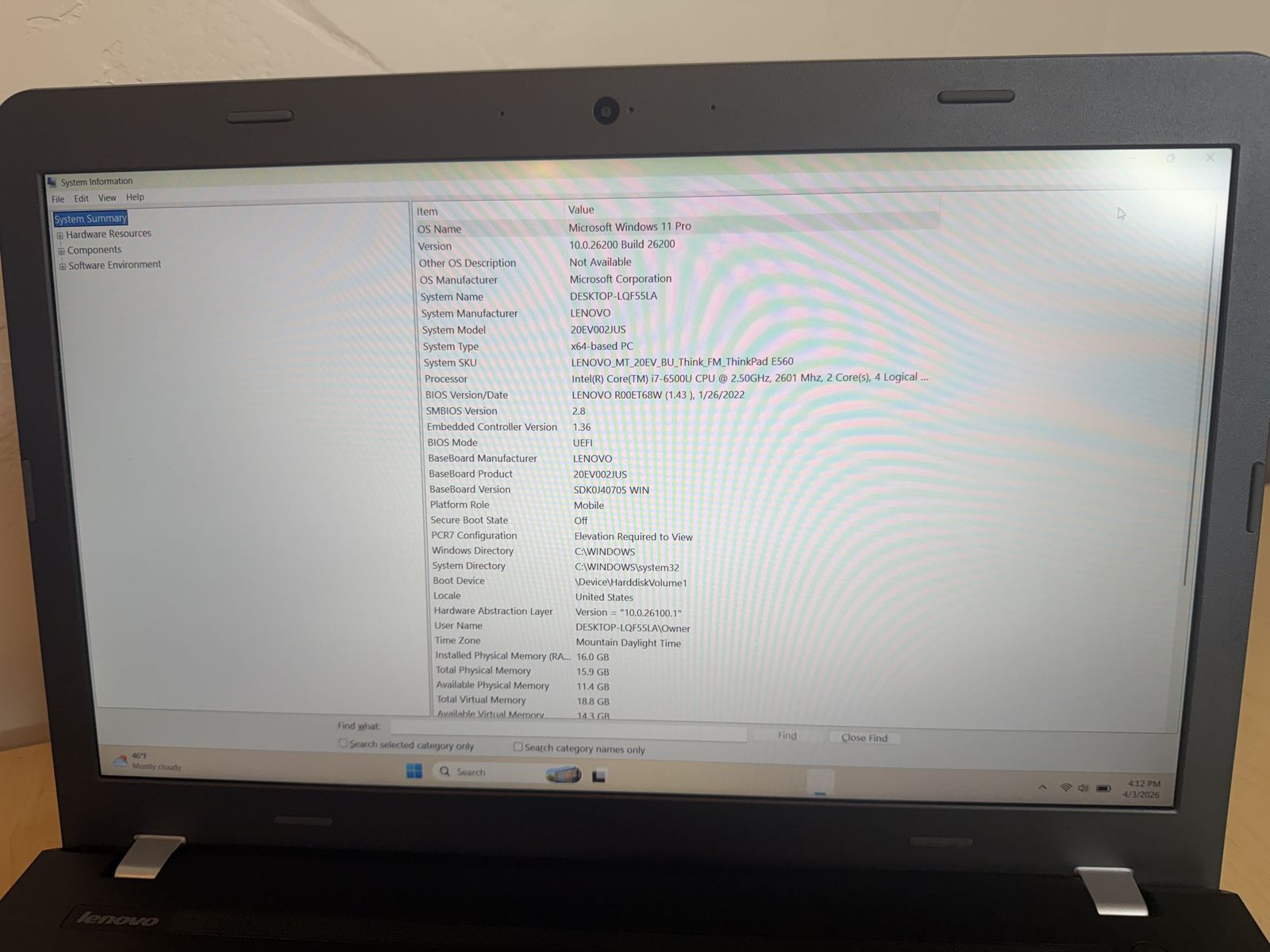 Lenovo Thinkpad E560 Laptop with core i7 CPU and Windows 11