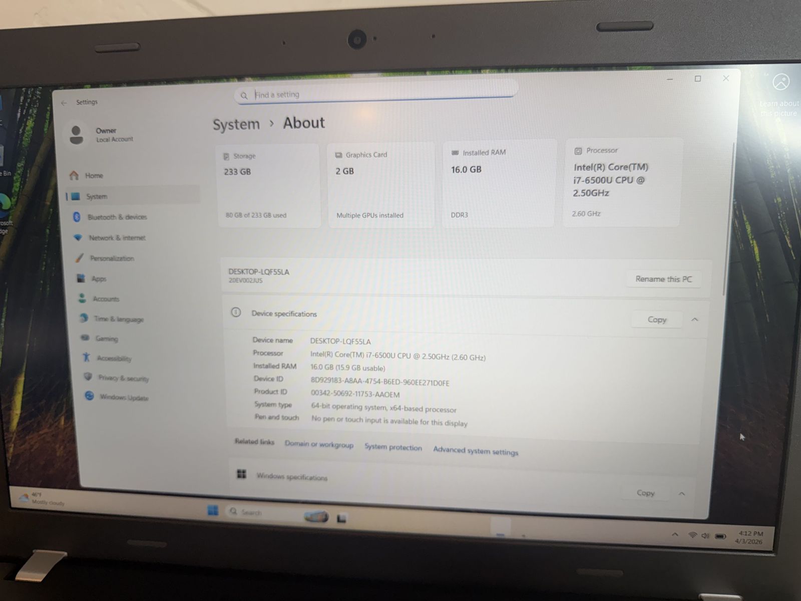 Intel core i7 -6500U CPU @ 2.50GHz with Radeon R7 M370 2GB