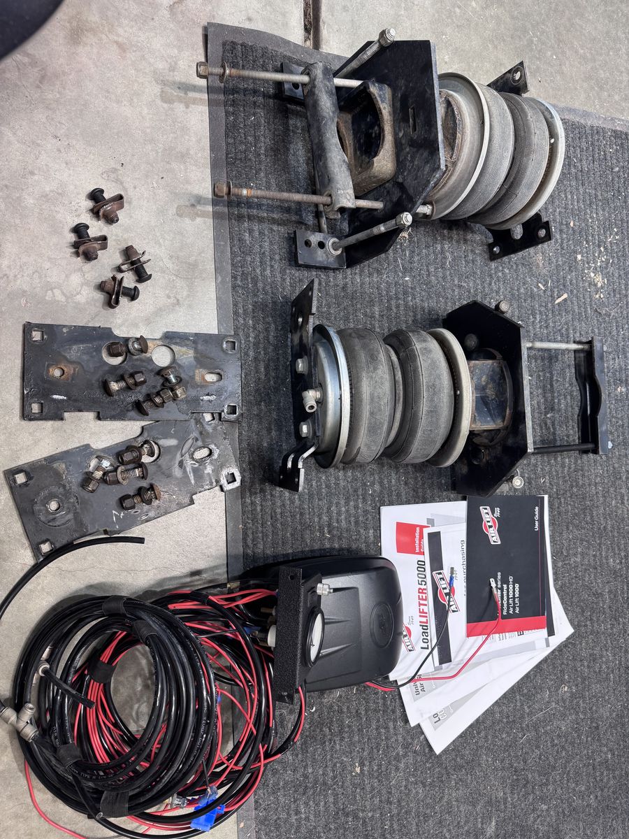 ZelleComplete airbag kit for 2017+superduty, plug and play, no additional parts needed. Bags are in good working order, no leaks or damage, all other parts are in used but great condition with a few brand new bolts.
