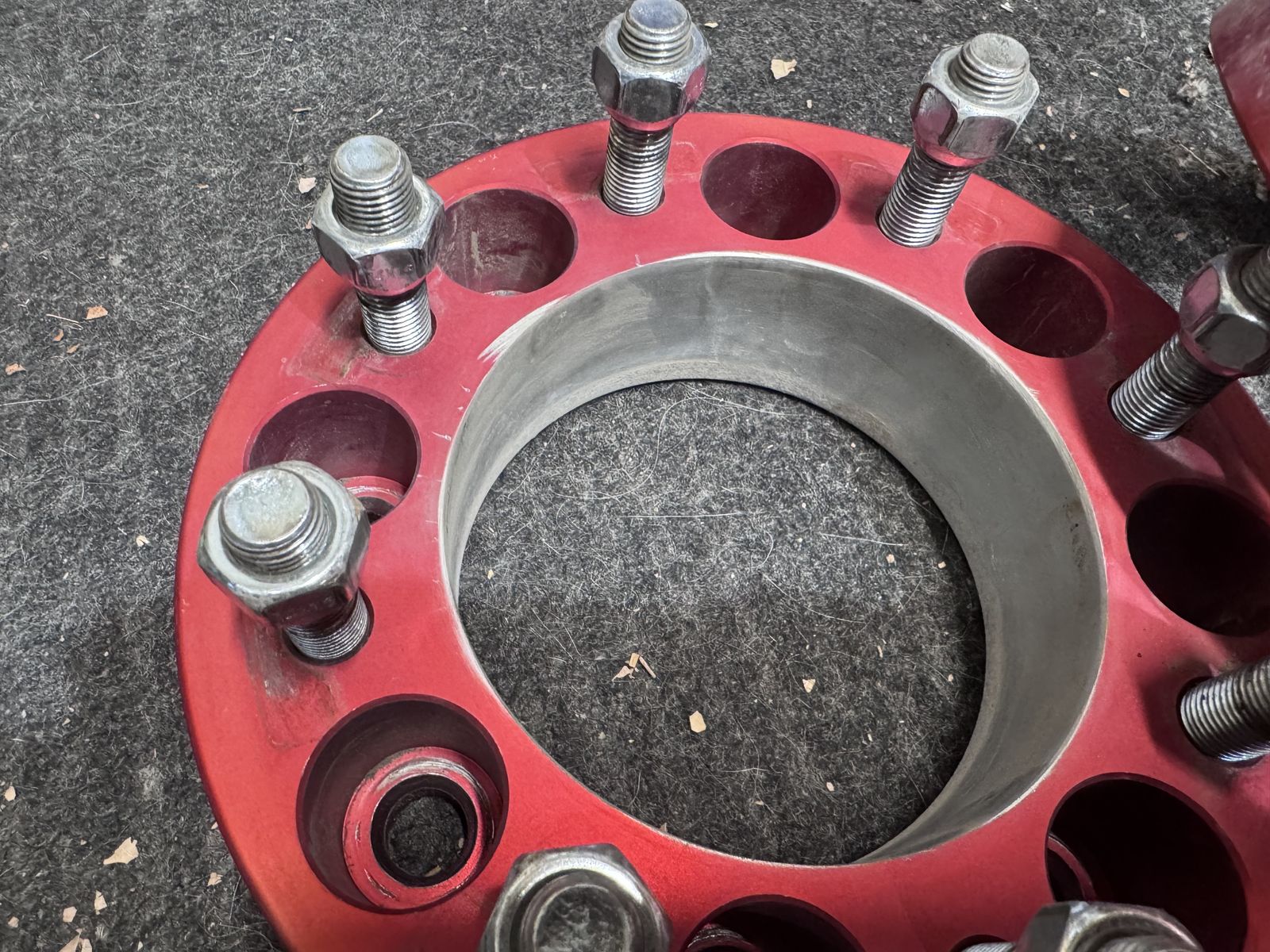 ZelleX4-Rough country 2” wheel spacers. 2 of them have been modified to fit 2017+ ford 4” axle. Good condition and will come with white spike lug nuts.