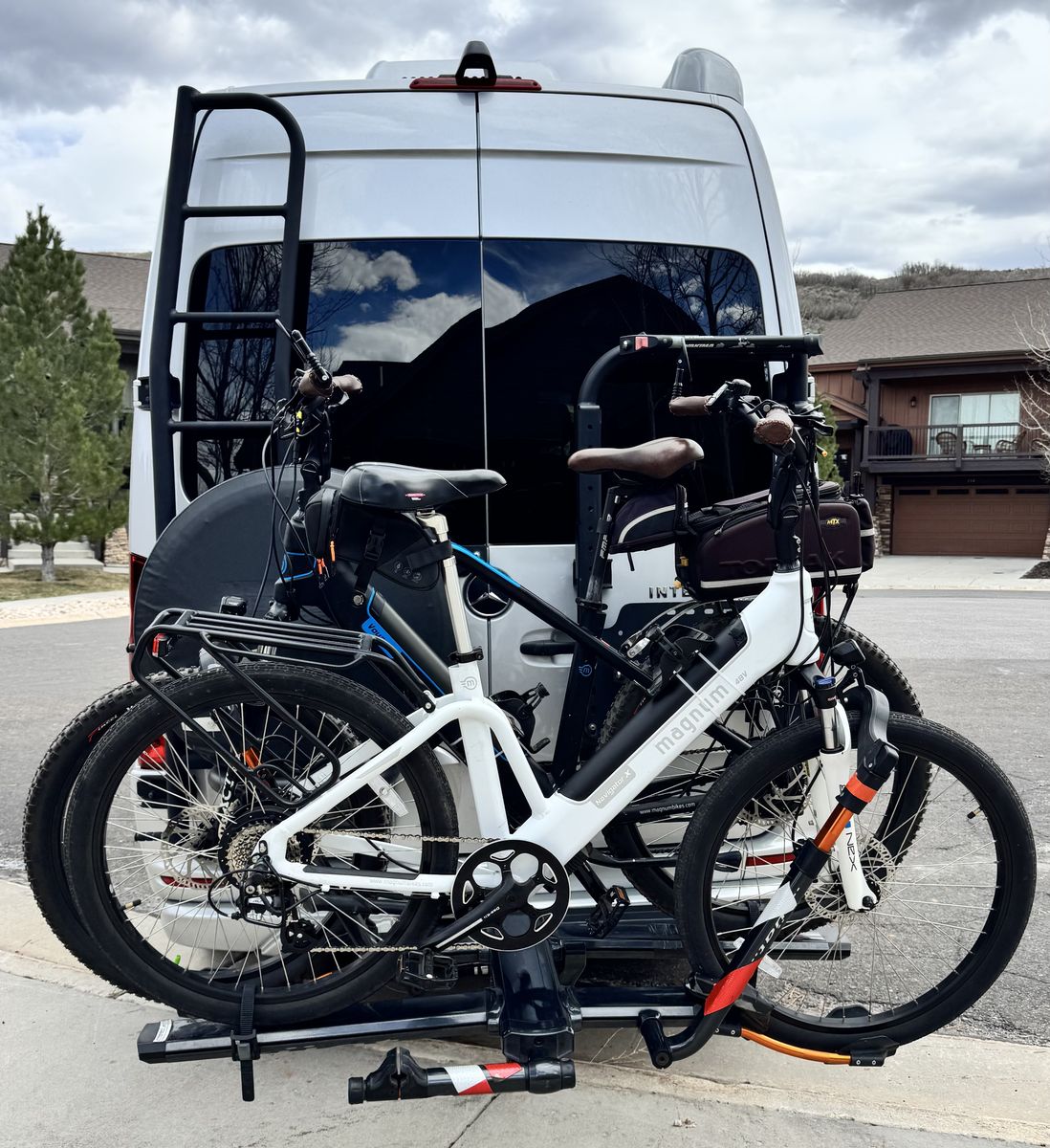 upgraded insulation rear doors and floors Weathertech’s floor mats vanagon windshield deflector rhino spare tire luggage bag ladder storage bag