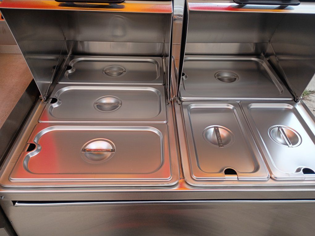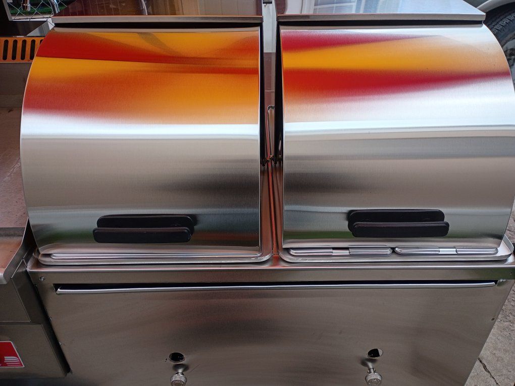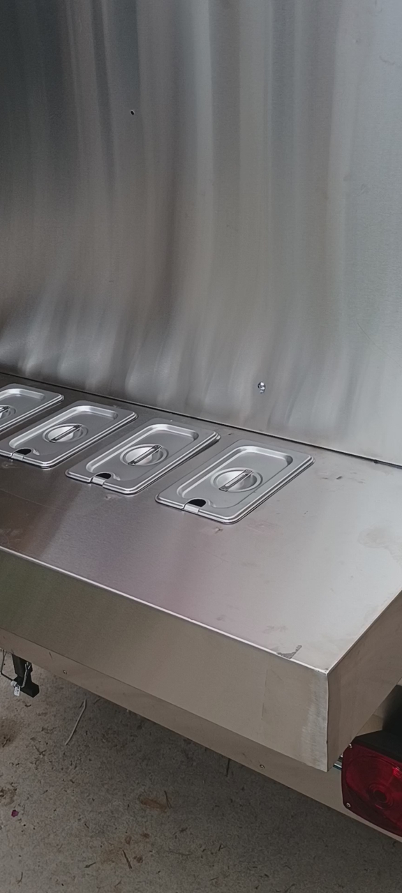 Carrito de Comida Profesional "Llave en Mano" – Totalmente Equipado. ¿Buscas un carrito de comida de alto rendimiento que esté listo para la temporada? Esta unidad, equipada profesionalmente, está construida para el volumen y la eficiencia. Cuenta con una plancha de alta potencia combinada con dos mesas de vapor de gran capacidad, completas con elegantes cubiertas deslizantes (rollback) para mantener tu producto fresco y caliente. Características Principales: Plomería Autosustentable: Calentador de agua a pedido con tanques dedicados para agua potable y aguas grises. Almacenamiento Integrado: Nevera incorporada para un fácil acceso a ingredientes refrigerados. Movilidad Superior: Incluye un enganche para un transporte sencillo y una tercera rueda desmontable para posicionarlo sin esfuerzo en el lugar de trabajo.