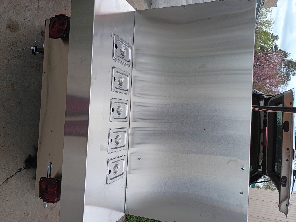 VenmoTurn-Key Professional Food Cart – Fully Equipped. Looking for a high-performance food cart that’s ready for the season? This professionally outfitted unit is built for volume and efficiency. It features a high-output griddle paired with two large-capacity steam tables, complete with sleek rollback covers to keep your product fresh and hot. Key Features: Self-Sustained Plumbing: On-demand water heater with dedicated fresh and gray water tanks. Integrated Storage: Built-in cooler for easy access to chilled ingredients. Superior Mobility: Features a hitch for easy transport and a removable third wheel for effortless positioning on-site.