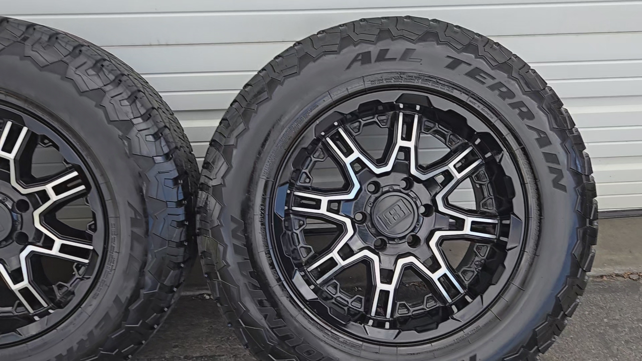 GooglePaySet of 18" 6x139 level 8 wheels with 275/70/18 tires with plenty of tread left. Wheels are 6 lug 18x9 . Wheels are a year old minor scratches