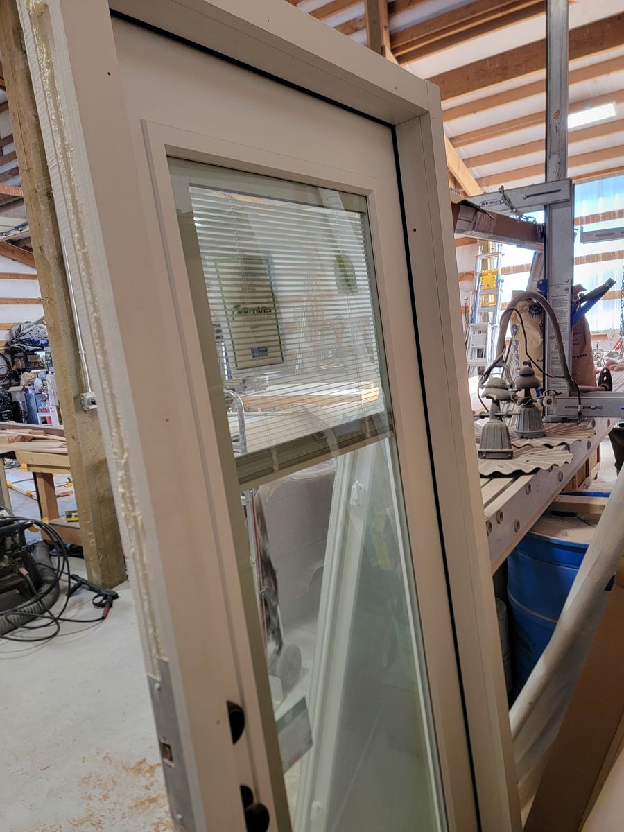 CashAppVery nice full glass provia blind integrated door. Was installed and replaced due to paint damage on the top right of the panel on the inside that can be fixed with painting or touch up. These are very nice high-end doors. 33 1/2" x 81 3/4"