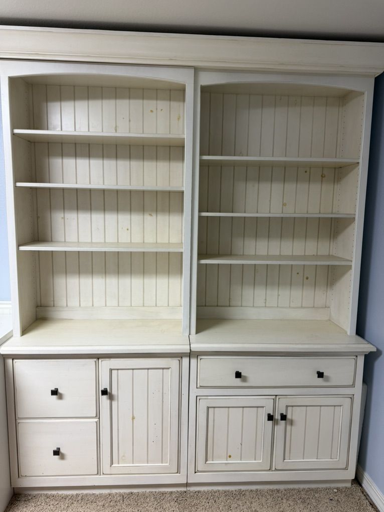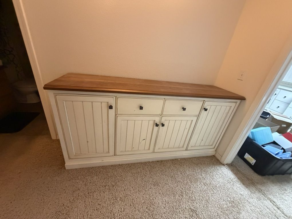 Two tone hutch, minor wear bottom left corner Custom shelves and buffet also available $200 each