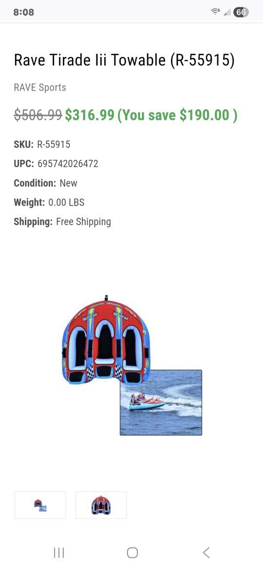 VenmoHeavy Duty, Rave Sport, 3 man Towable Boat Tube, New, only used 1 time, paid $500 asking $150 OBO. If interested please Text or Call 435-841-2560. Located in Grantsville