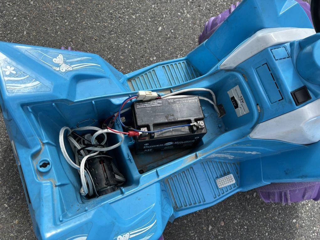 VenmoSelling a Kid Motorz 12V Monster Quad in Blue. This is the more powerful 12V version, not the slow 6V model. It features forward and reverse gears and handled grass and gravel great when the battery was fresh. Condition & Specs: • Battery: the current battery does work, but would greatly benefit from a new battery. It has been modified to run on a standard 12V motorcycle battery (previously used for a Honda Shadow), which gave it way more torque and longer run time than the stock toy batteries. • Frame: Good physical condition, typical minor scuffs from outdoor play. • Power: 12-Volt system (much faster than the 6V versions). I’m selling it as-is because I’m clearing out the garage.