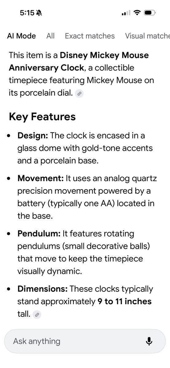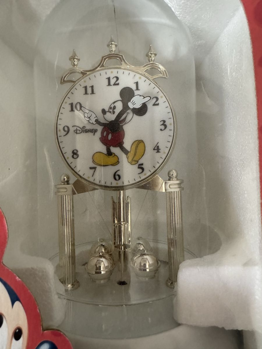 VenmoThis is a new unopened vintage Disney clock. Featuring Mickey. This has never been out of the box. So I assume it works. The one picture shows the strings holding the pendulum in place is still attached. I included a picture of the details from google AI search. Message with questions.